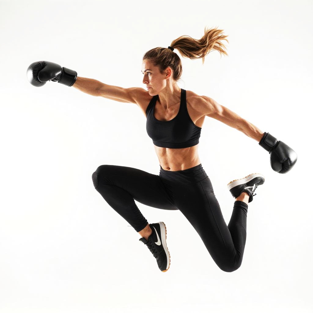 Dynamic Woman Mid-Air Boxing Punch