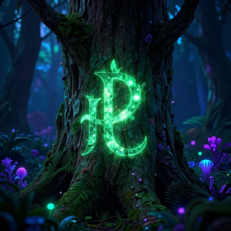 A mystical, lightning rune shaped like the letter \"A\" intertwined with a feywild tree, emitting a radiant glow.