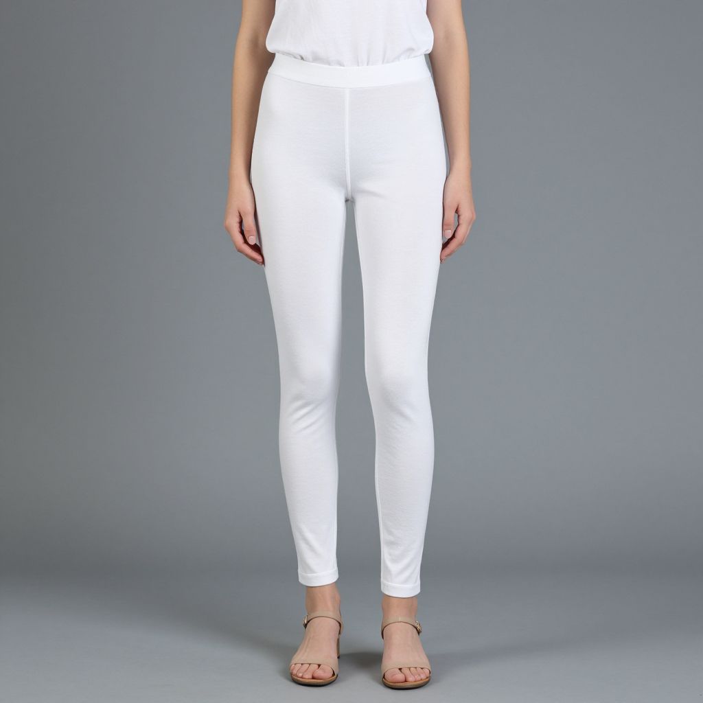 Cotton leggings woman, solo, 1girl, shirt, sandals, pants, standing, full body, brown hair, realistic, white pants, t-shirt