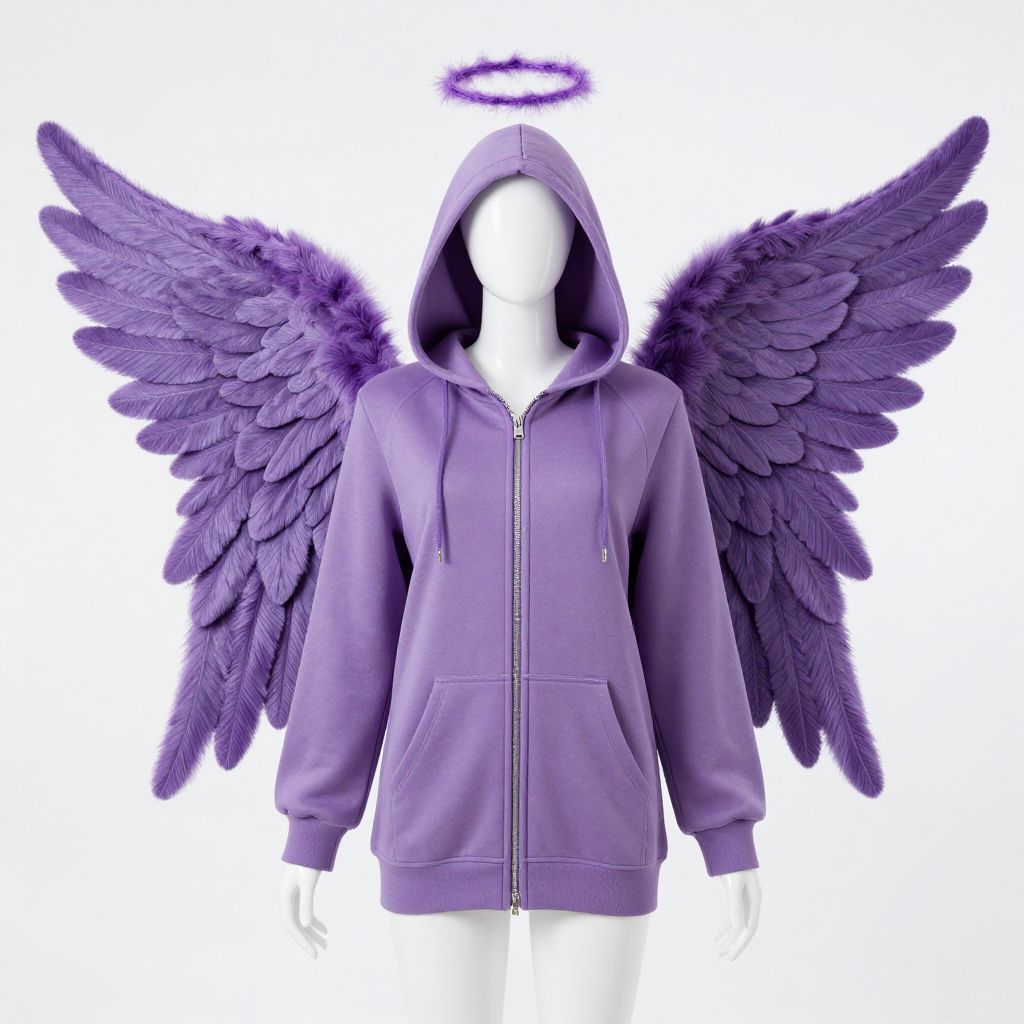 Purple Angel Costume, purple angel hoodie with wings and halo