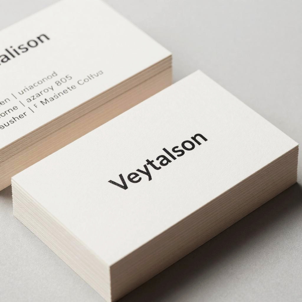Visitenkarten elegant and modern design, close up of stacked professional business cards with minimalist typography and subtle textures, warm lighting, high resolution, corporate branding essentials, sleek and clean layout, soft shadows