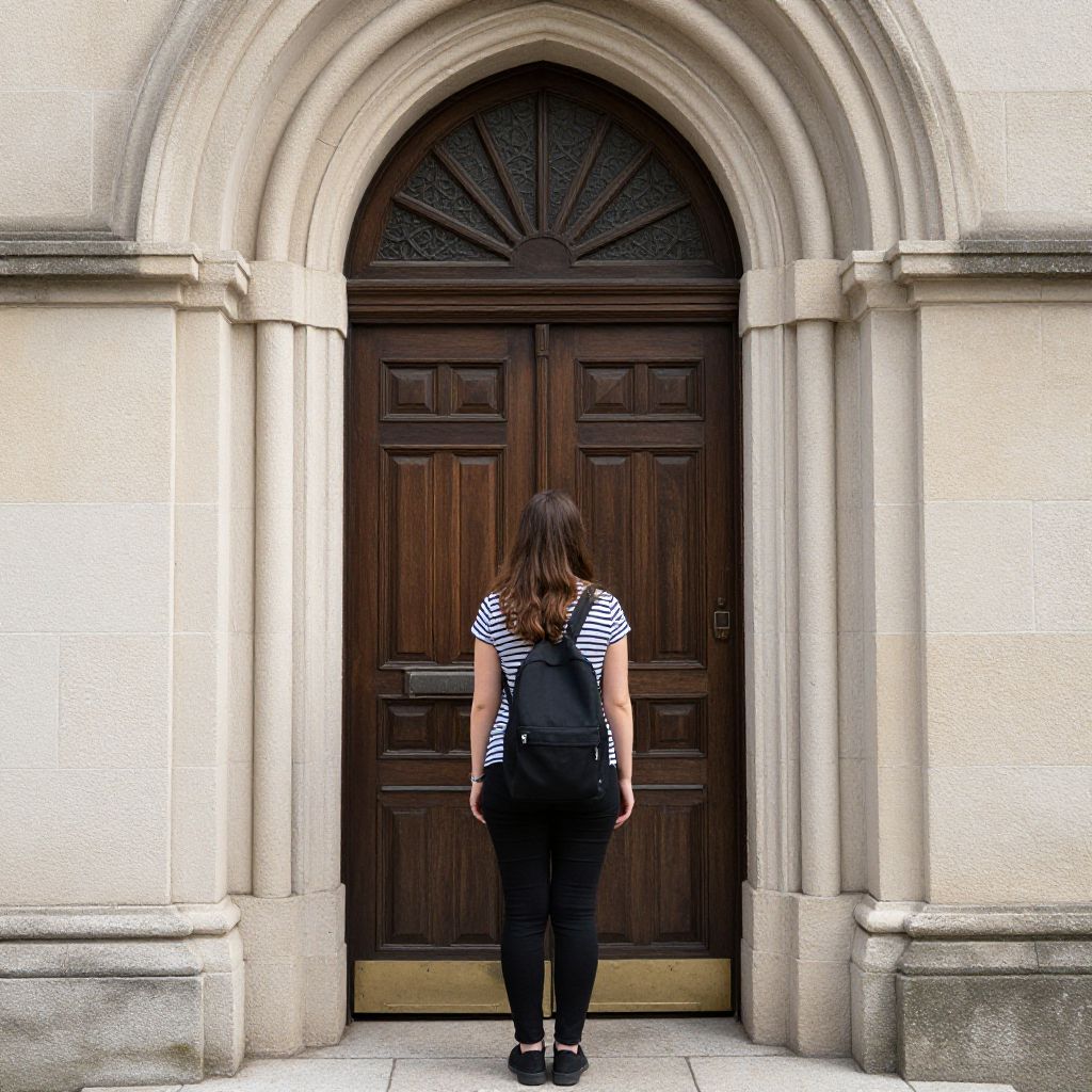 Woman Standing at Church Door