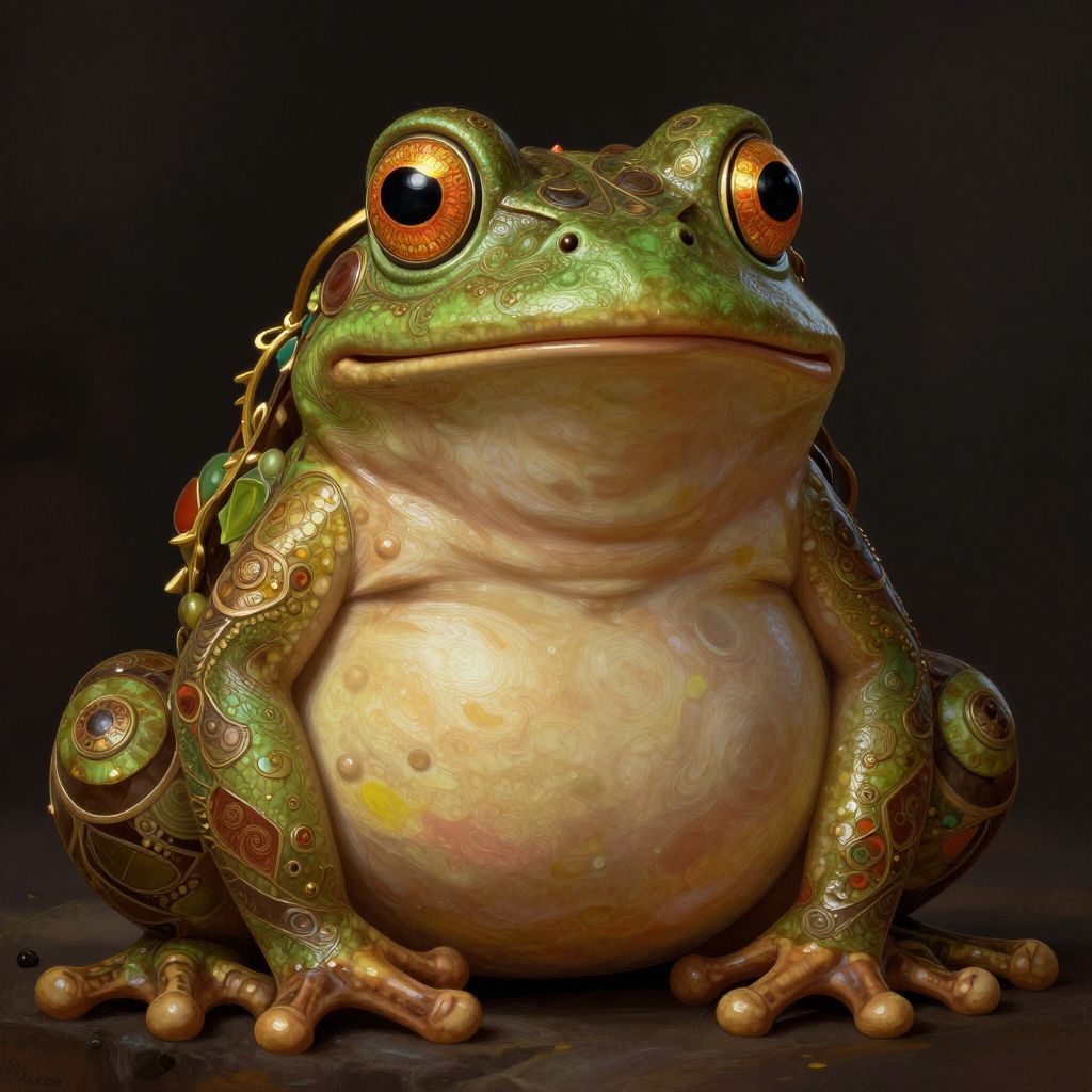 A fat happy frog fantasy, intricate, elegant, highly detailed, digital painting, artstation, concept art, smooth, sharp focus, illustration, art by greg rutkowski ismail inceoglu