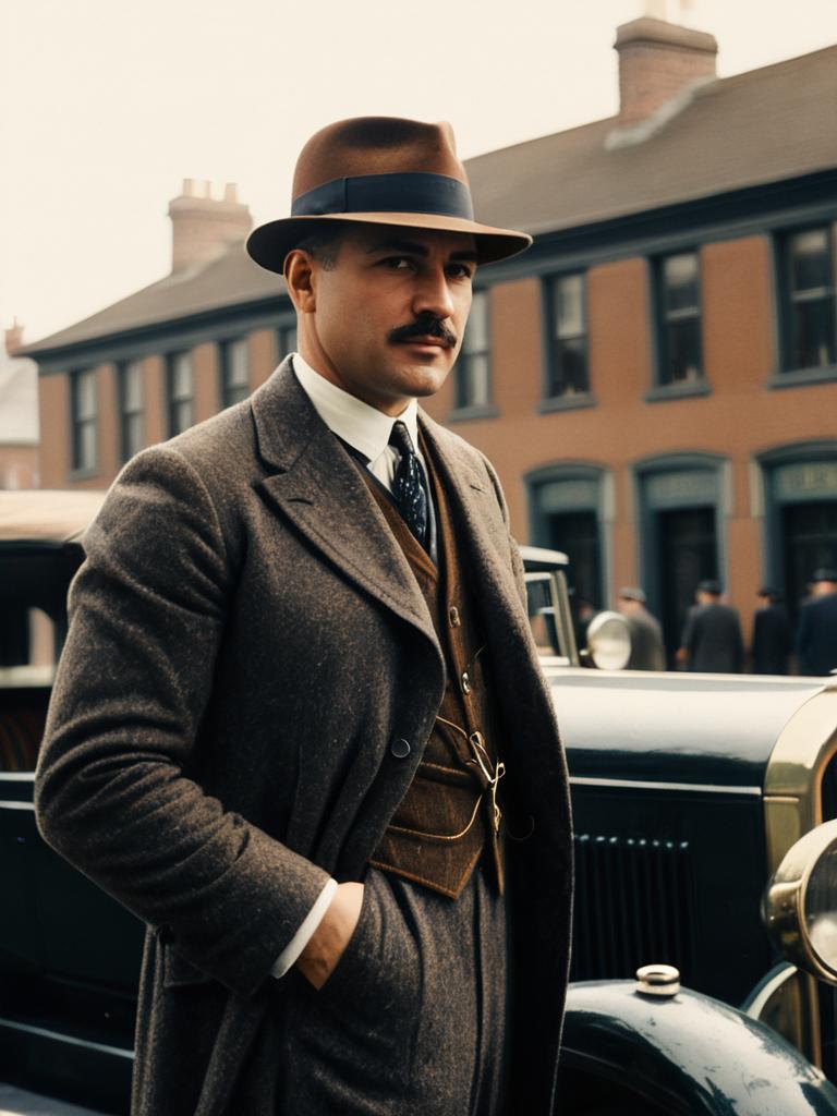 Man in 1920s Attire, waist-up editorial portrait, photorealistic tones --sref 1399