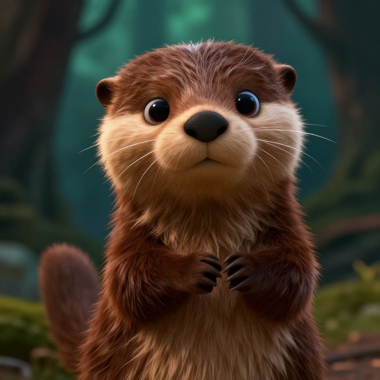 Trend chibi otter, portrait, intricate detail, Pixar animation, cinematic lighning, forest background,