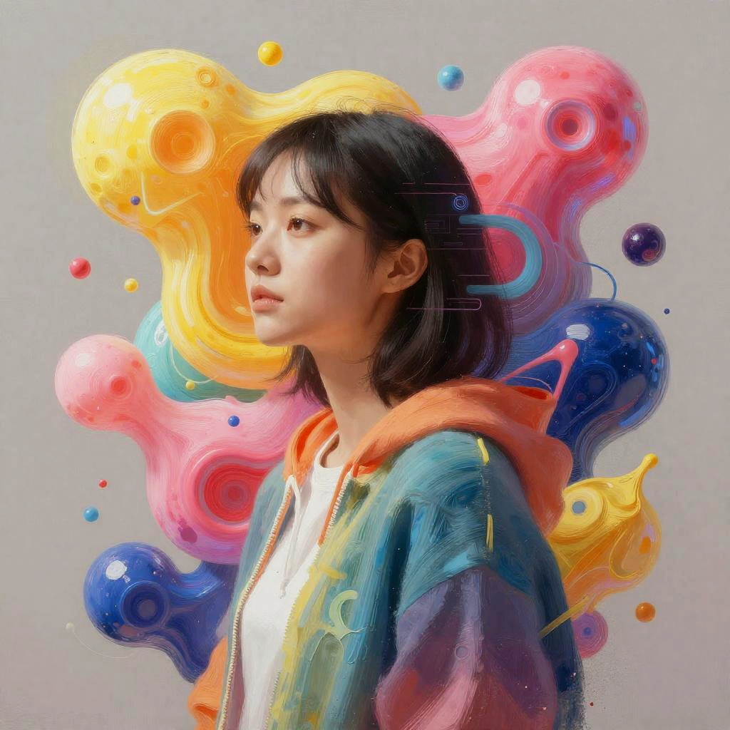 AI art generator from image free, transforming a simple photo into vibrant surreal artwork, filled with bright colors and dreamlike abstract shapes, blending technology and creativity, digital brush strokes with futuristic aura, high resolution.