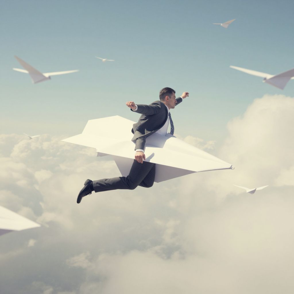 Men Soaring on Paper Airplanes