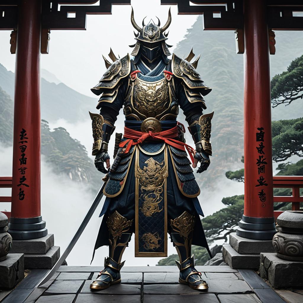 Futuristic Samurai Warrior in Bamboo Forest