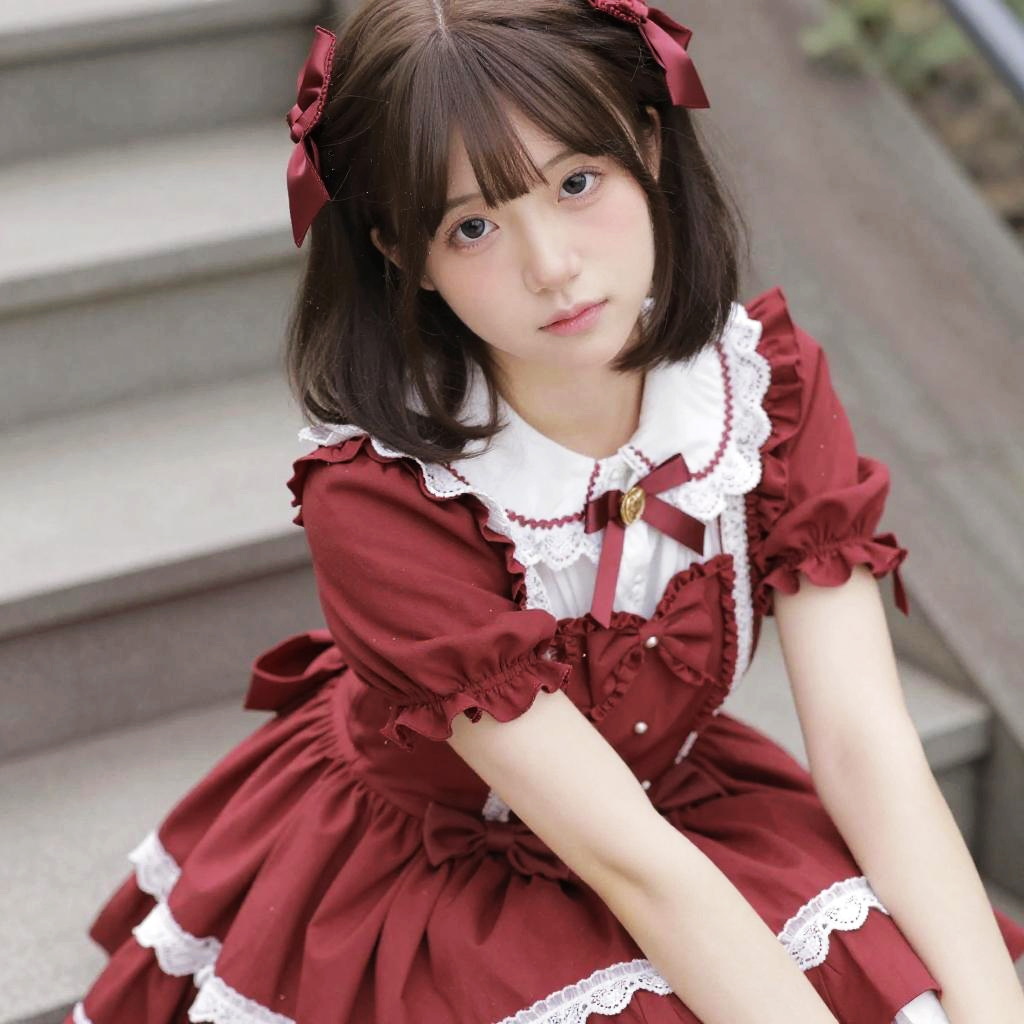 Photorealistic Girl in Red Lolita Dress