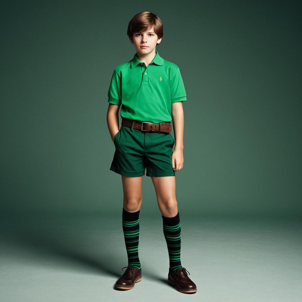 Patricks day costume man,1boy, male focus, solo, green shirt, belt, shirt, green-tinted eyewear, looking at viewer, clover, vest, jacket, pants, brown belt, long sleeves, closed mouth, green vest, green theme, brown hair, collared shirt, suit, cowboy shot, standing, arms at sides, bow, necktie, formal, buttons