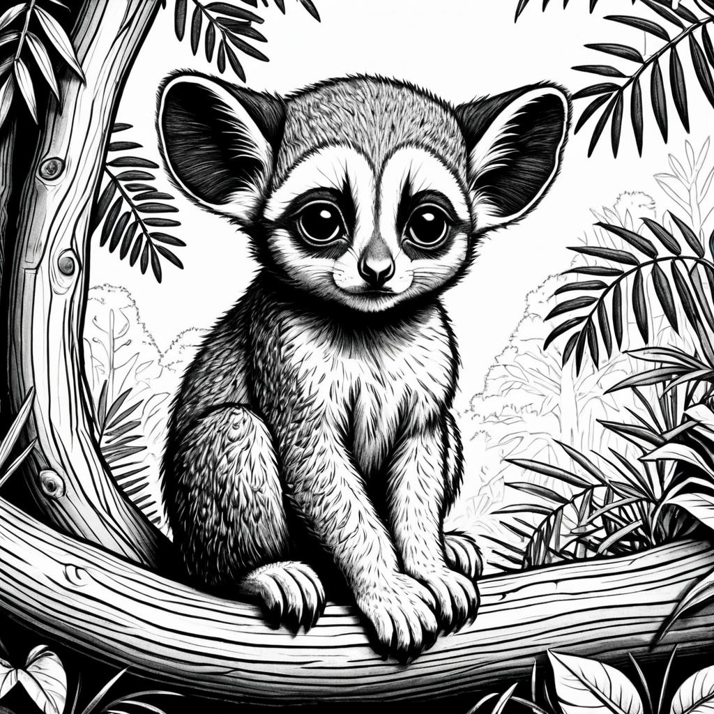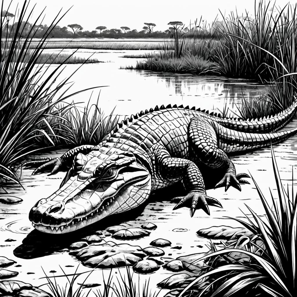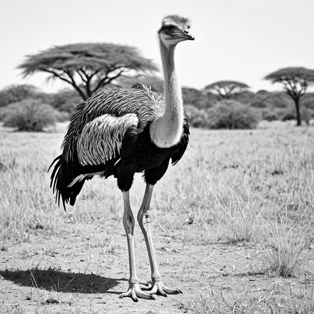 Black-and-white coloring book page of a sleepy cheetah, full-body shot by Max Johnson. The illustration features a simple African background and is designed to be easy to color, making it suitable for young children, with a high-quality print resolution.