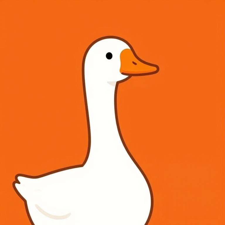 A minimalist and modern illustration of a white goose with an orange beak, depicted in a clean, cartoonish art style, The goose is set against a bold, solid orange background, emphasizing simplicity and vibrant contrast, The artwork features smooth, thick outlines and a cheerful, whimsical aesthetic, The composition is straightforward, focusing on the upper body and head of the goose, evoking a sense of humor and charm