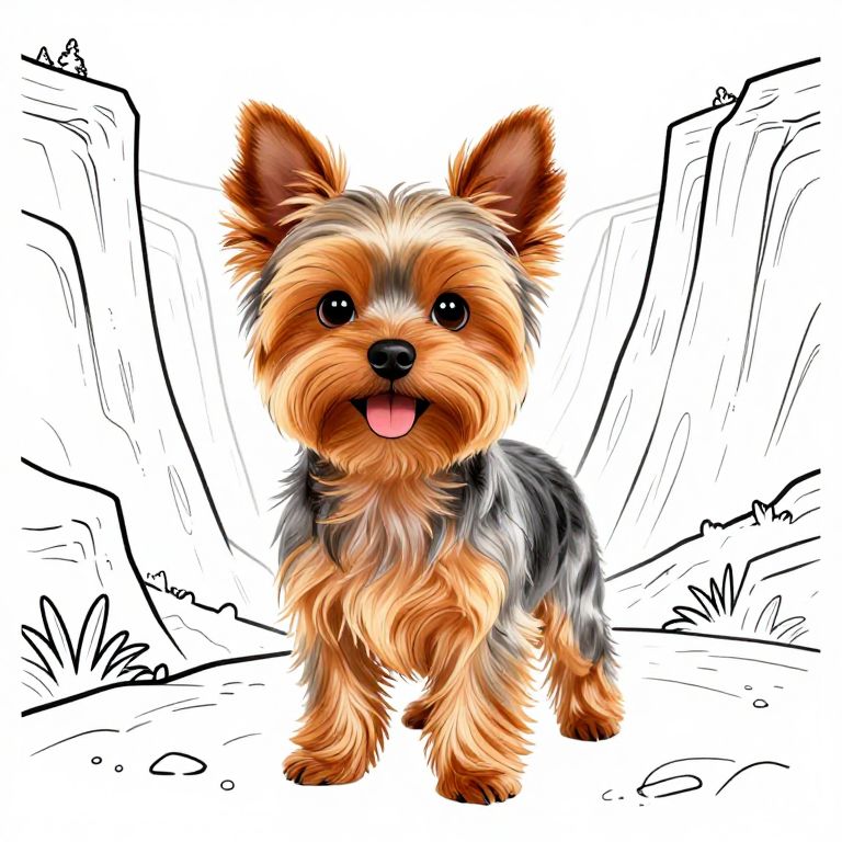 An artistic illustration of a hybrid character combining features of a Yorkshire Terrier dog and Kim Kardashian. The character has an oversized head, expressive eyebrows, a mischievous grin, and is styled with a crayon-like texture reminiscent of Pablo Picasso's artwork. The character wears a blue checkered jacket and has hair styled in a bun. The image blends realism with caricature in a playful and exaggerated manner.