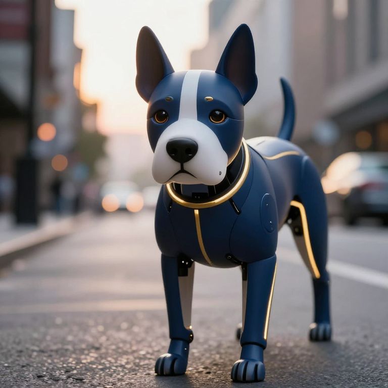 Cyborg Dog Walking at Dusk