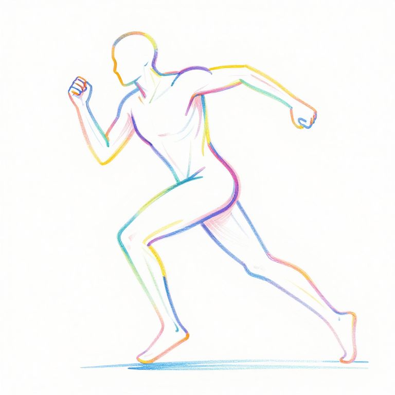 Bodyoutline of an athletic person mid-motion, drawn with dynamic, flowing lines in pastel colors, on a minimalistic white background, emphasizing movement and energy, modern art style
