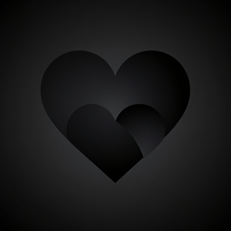 Black aesthetic heart wallpaper featuring a sleek, minimalist design with intertwined hearts in deep matte black shades, set against a subtle dark gradient background, perfect for a modern, moody ambiance.