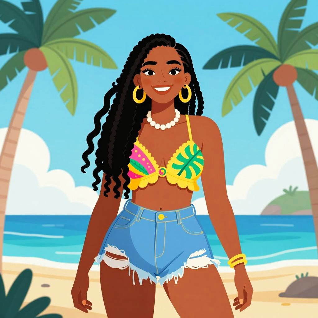 Vibrant Caribbean Woman Beach Illustration