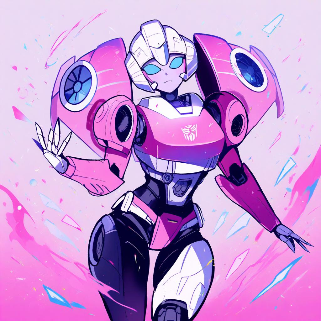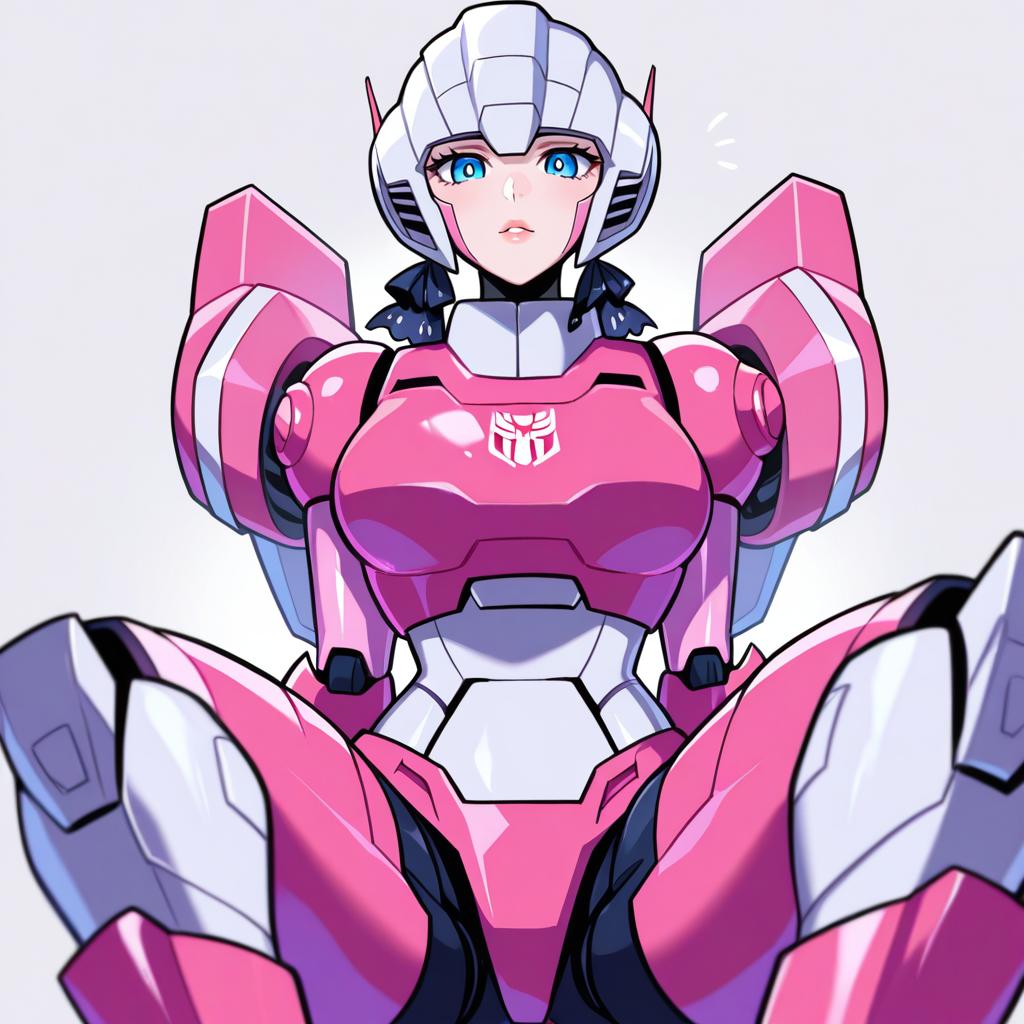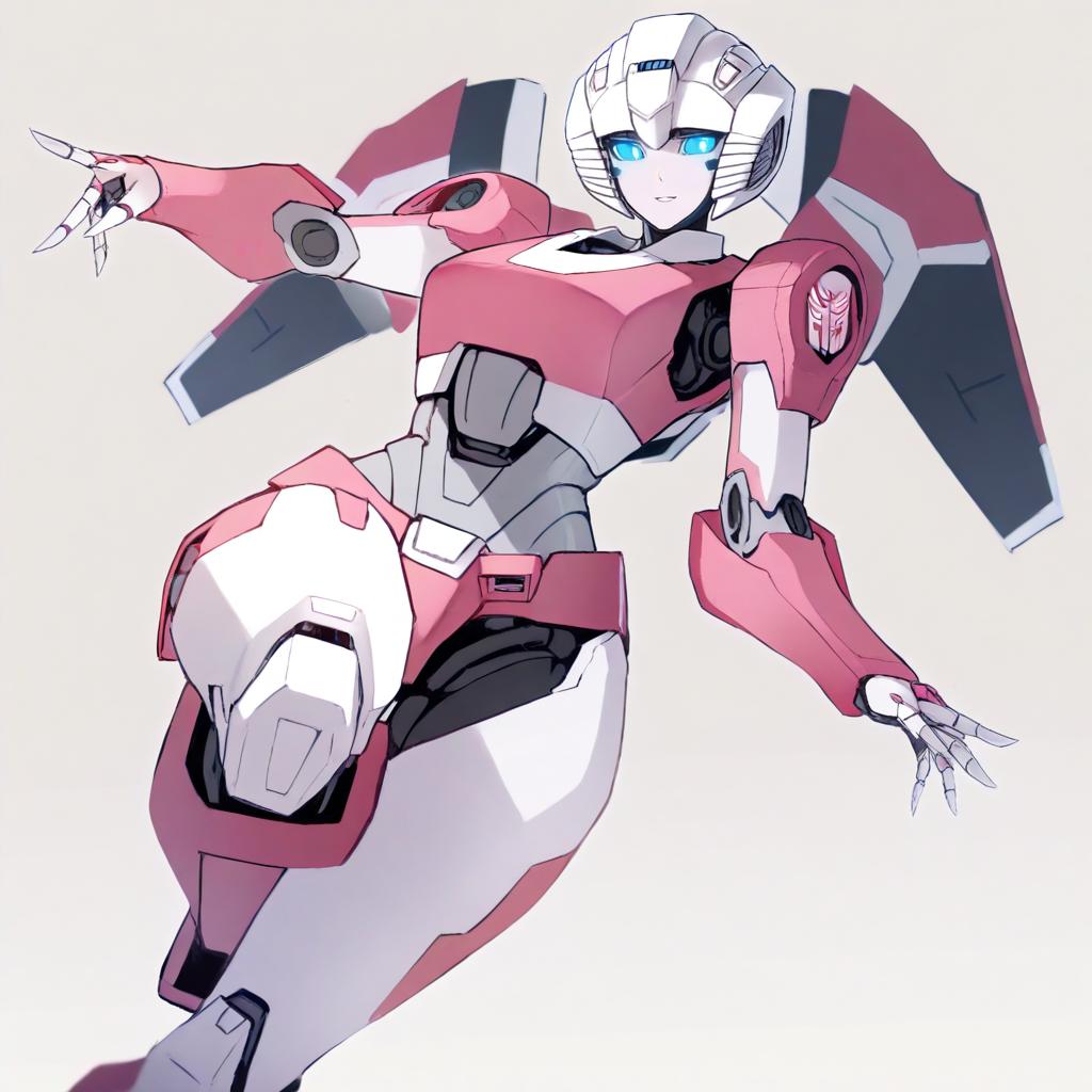 Arcee, transformers, 1girl, blue eyes, medium breasts, autobot, robot girl, mecha, by artist nase, animagine