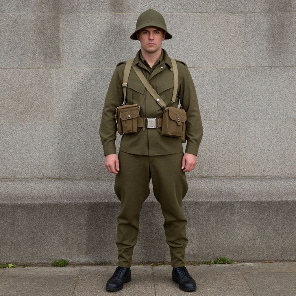 Ww2 American Soldier Costume, man in a uniform standing in front of a stone wall