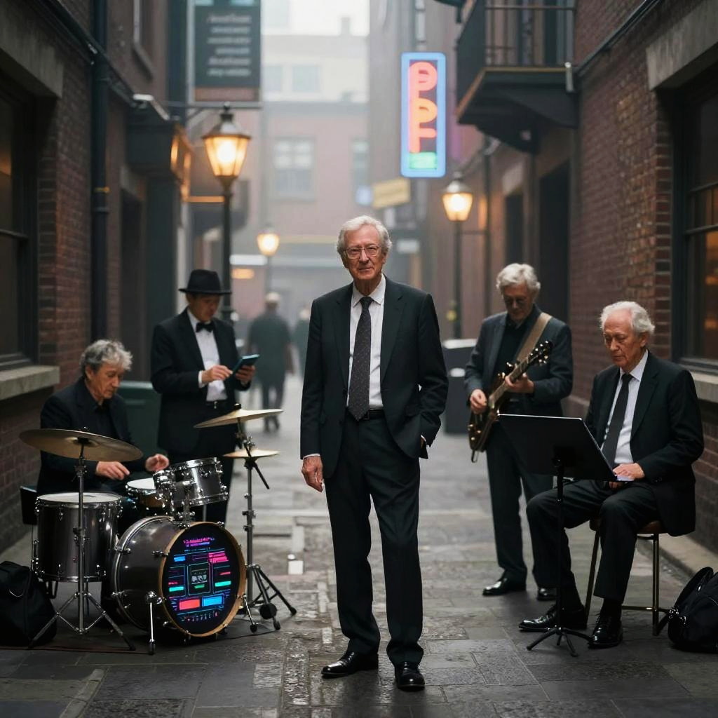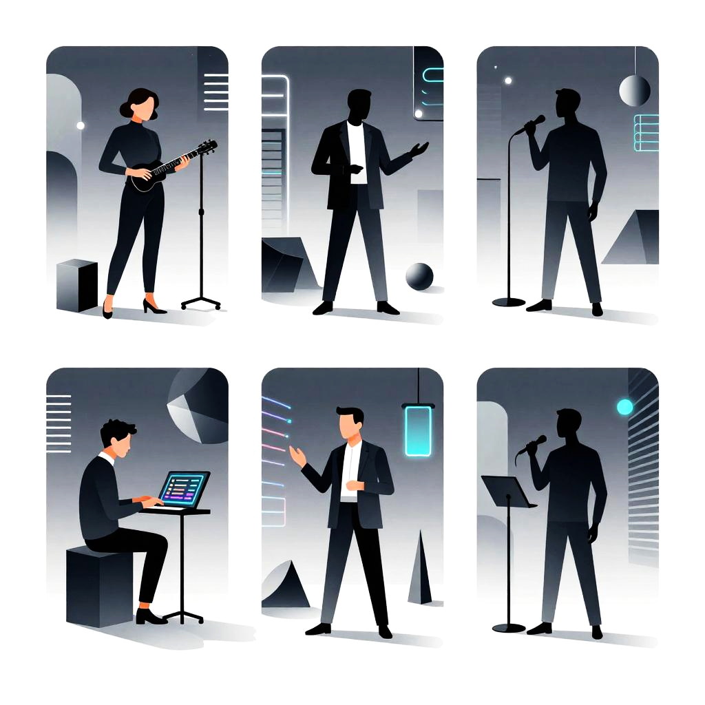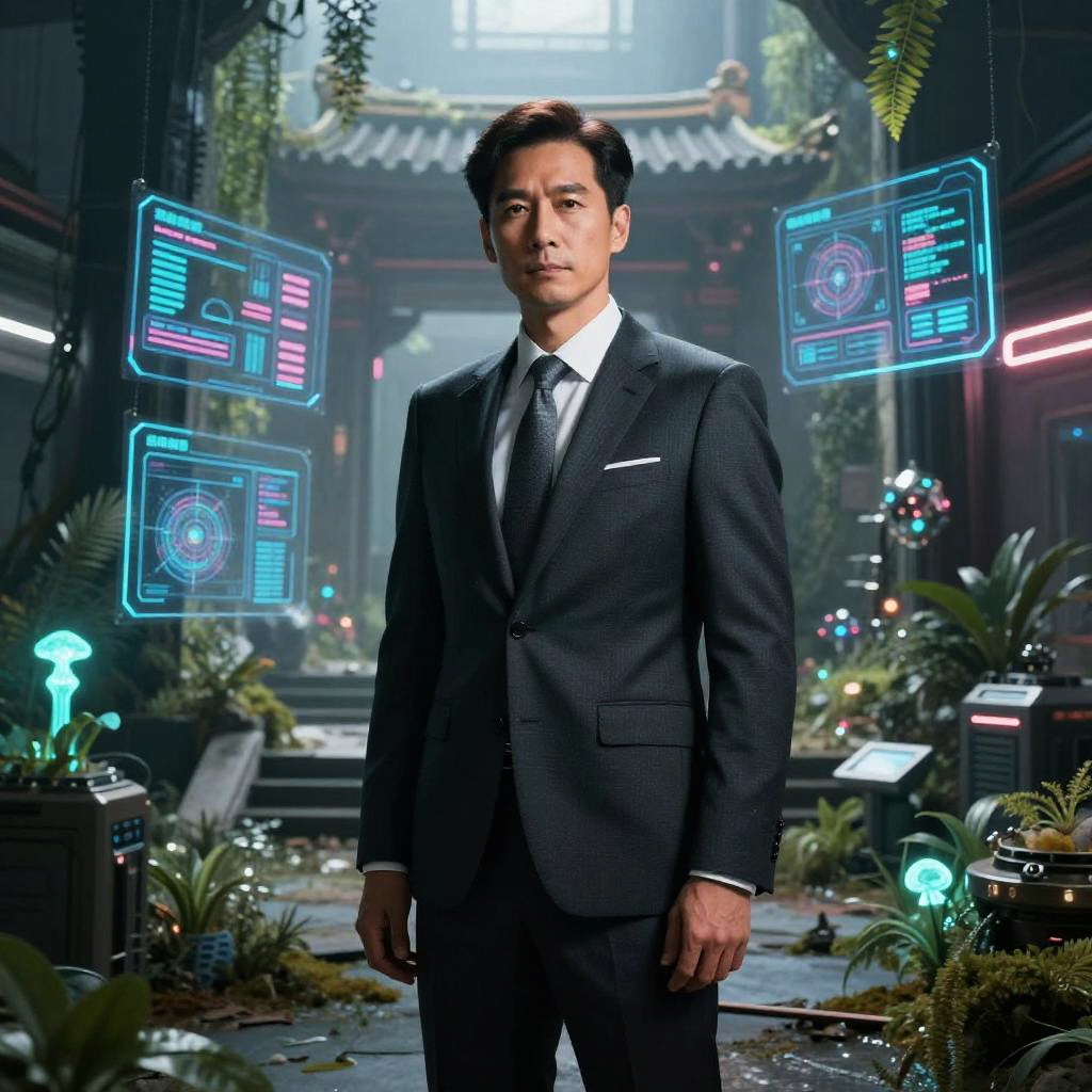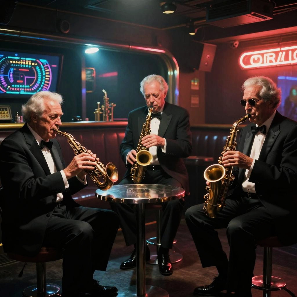 Futuristic art-deco digital watercolor, high-detail 4k, warm cinematic rim lighting, subtle film grain, crisp precise edges portrait series of elegant robotic dancers in gilded ballroom with stained glass windows, holographic dashboards, reflective chrome and glass, neon signage, dramatic rim light, atmospheric fog, clean outlines and precise edges, confident expressions and executive fashion, high contrast, subtle noise, long shadows, futuristic corporate aesthetics