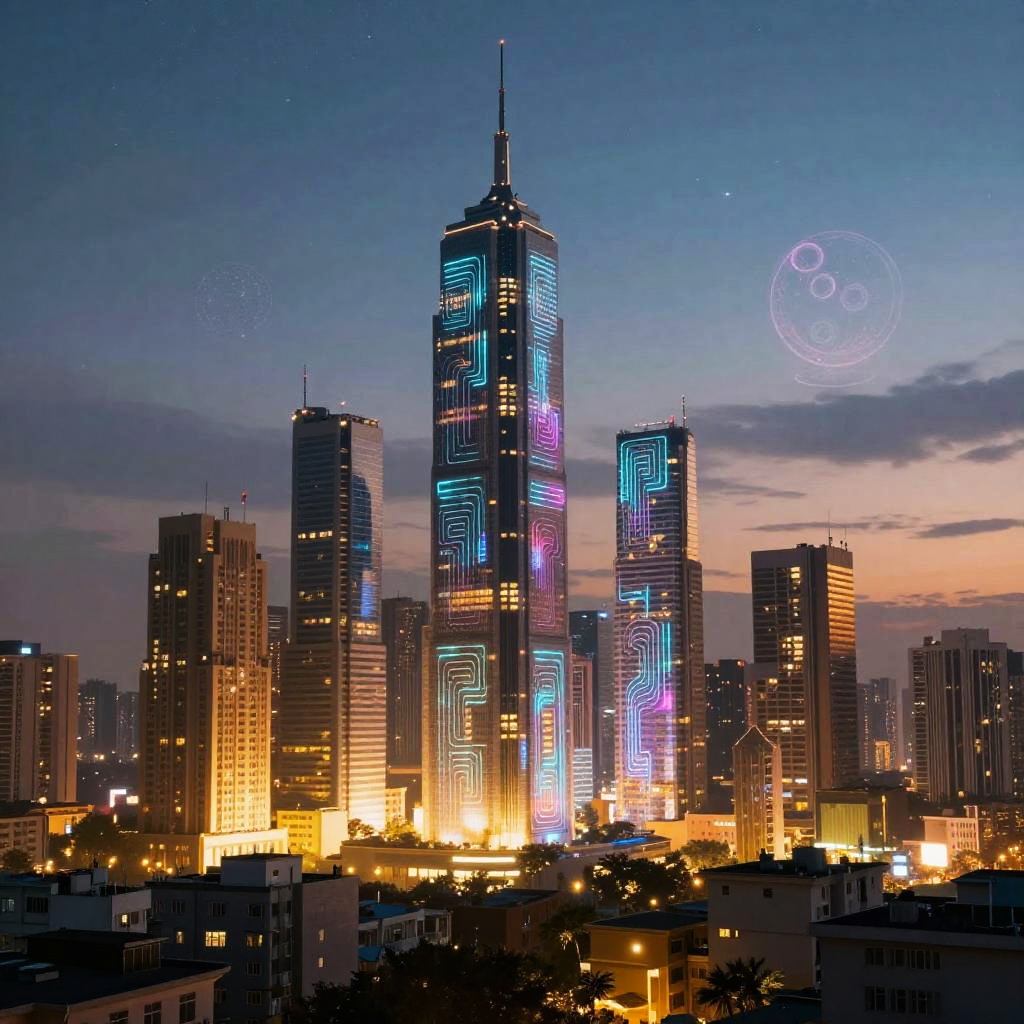 Futuristic Twilight Cityscape with Neon Glow
