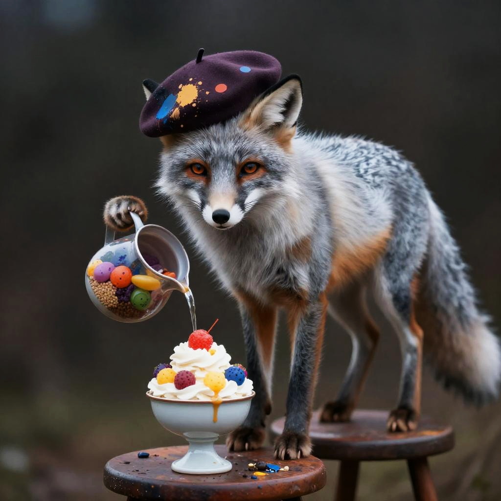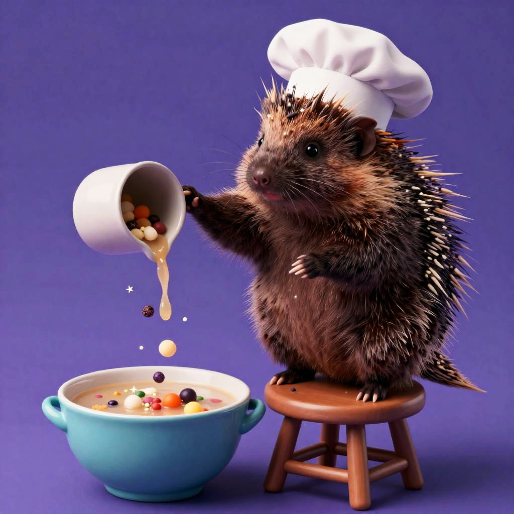 Surrealism artwork of a armadillo with a steampunk goggles, standing on a stool, pouring ingredients into a celestial tea, high quality, detailed surrealism, vibrant colors, whimsical style, exaggerated proportions, dreamlike setting, surreal armadillo, steampunk goggles, pouring, stool, vibrant surreal colors, whimsical, dreamlike, detailed fur, professional art, surreal lighting