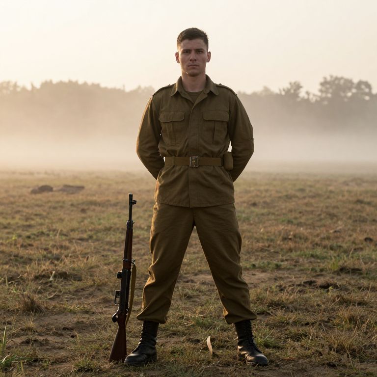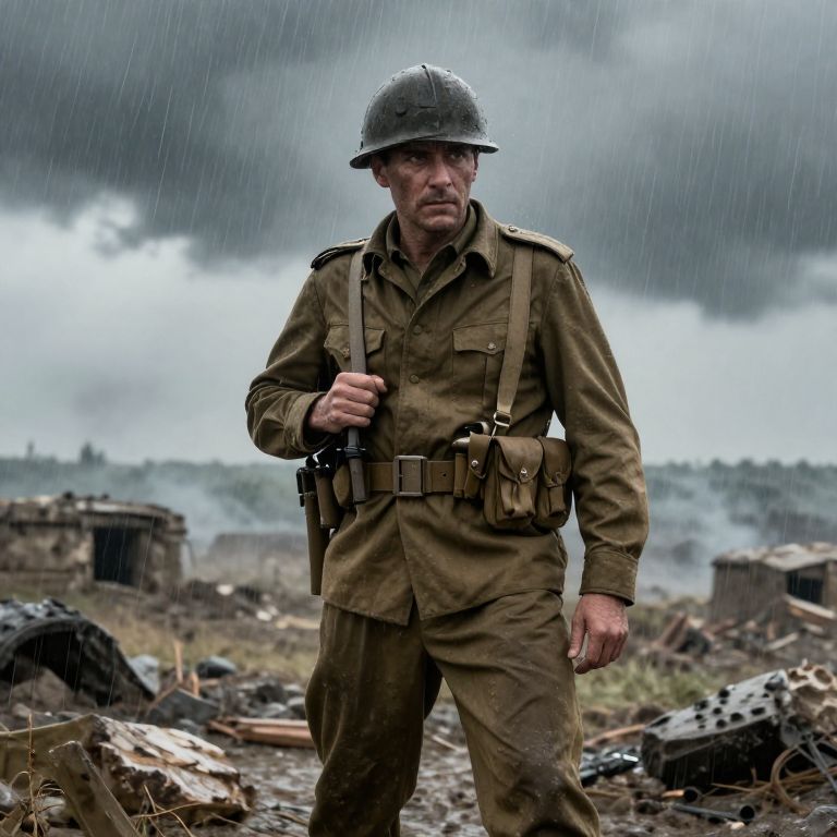 Realistic Middle-Aged Soldier in Storm