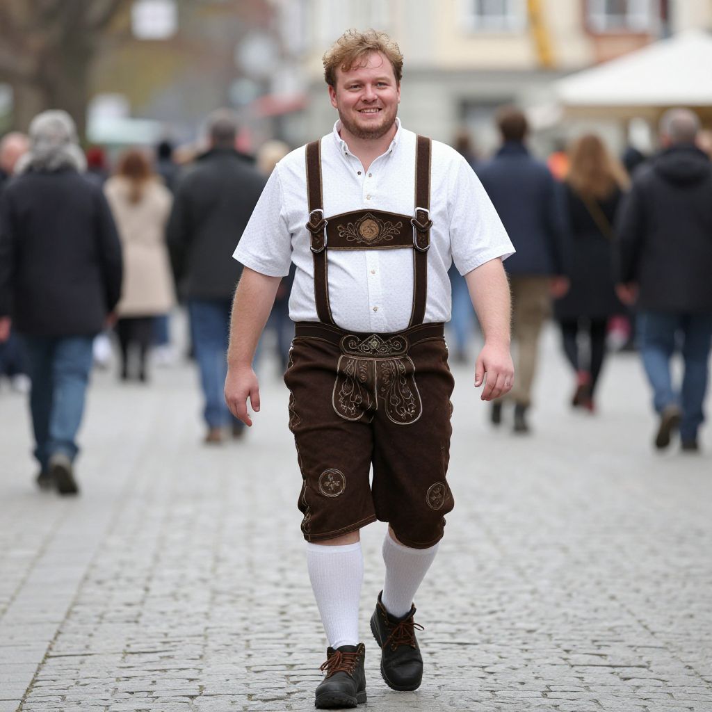 Oktoberfest Plus Costume, man in a costume walking down the street