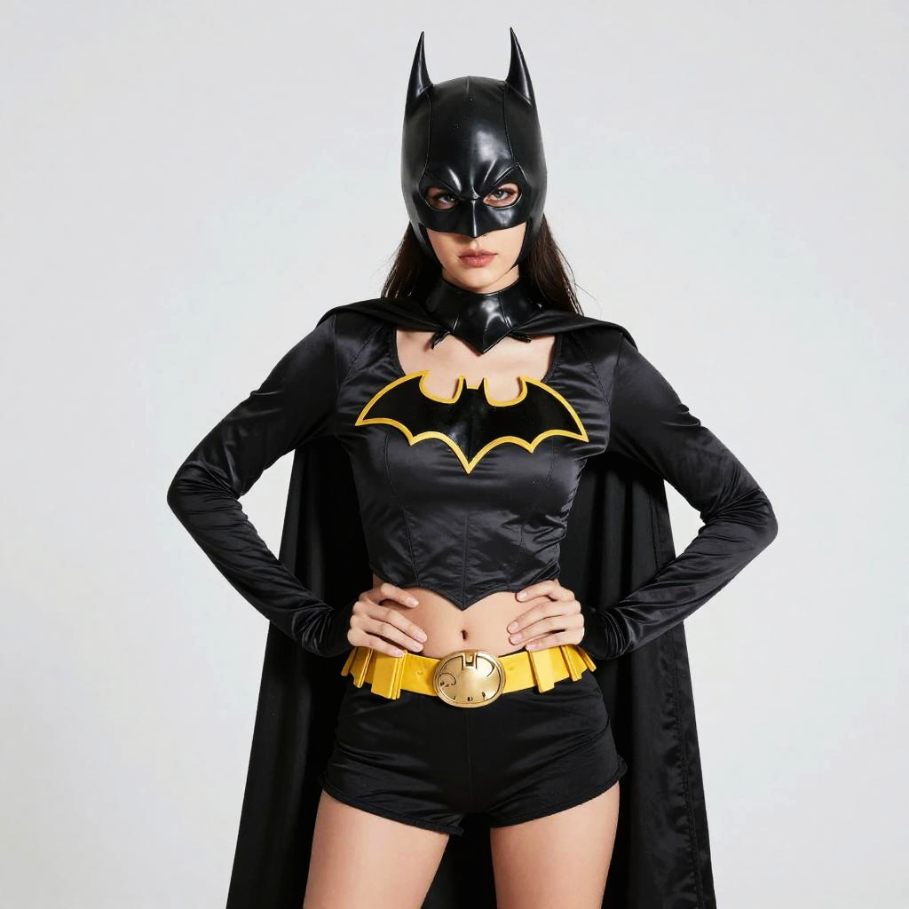 Super Villain Girls Costume, woman in a batwoman costume posing for a picture