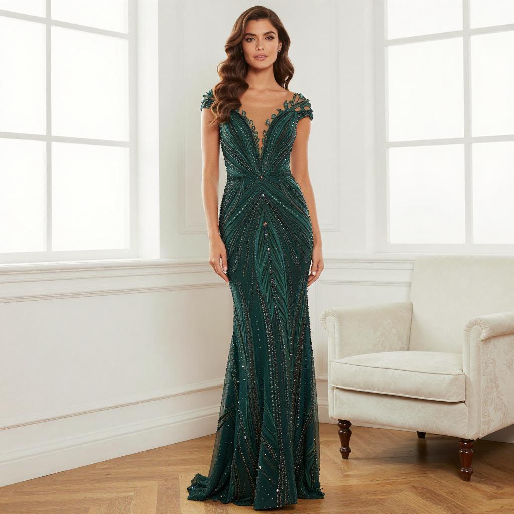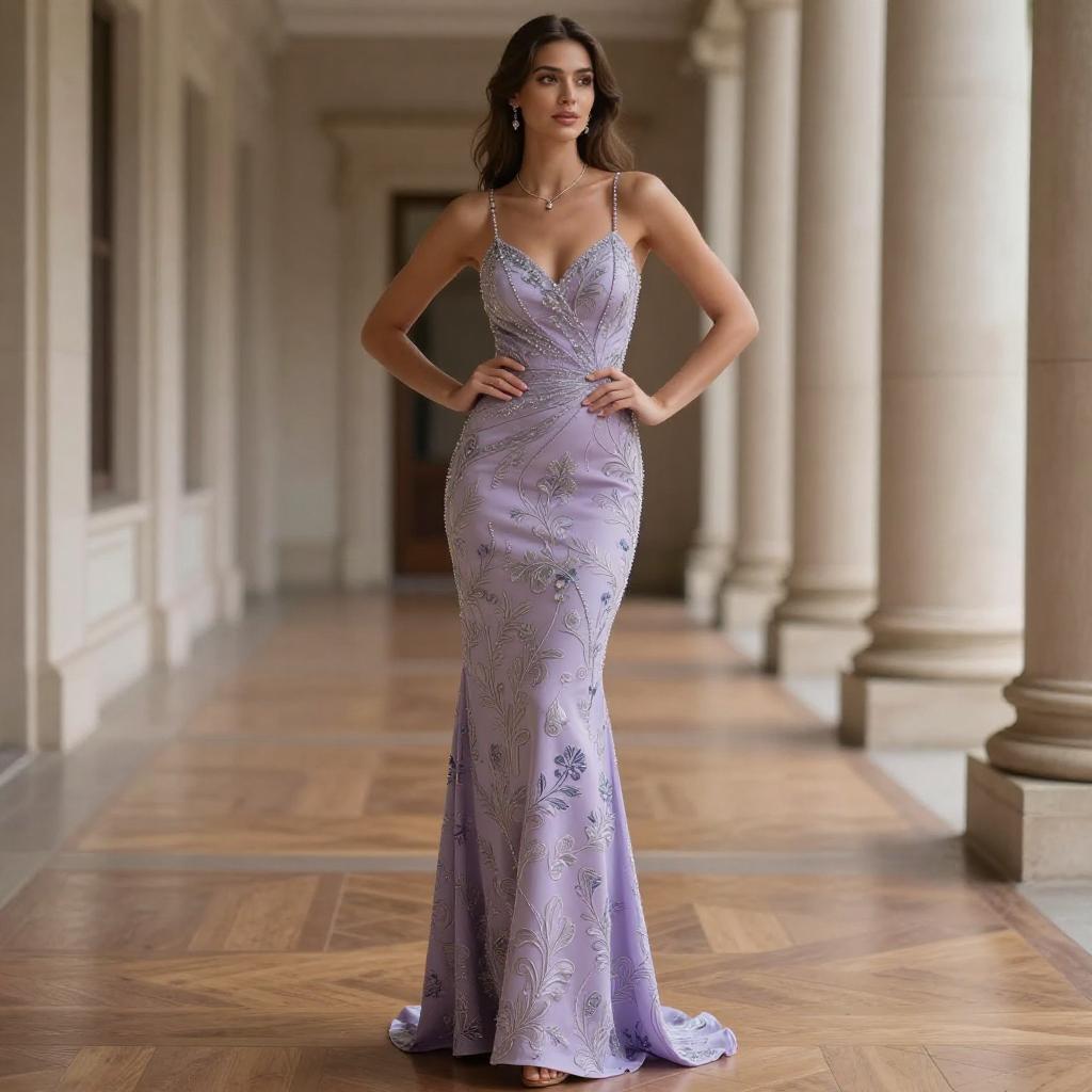 Elegant Woman in Silver Zebra Gown