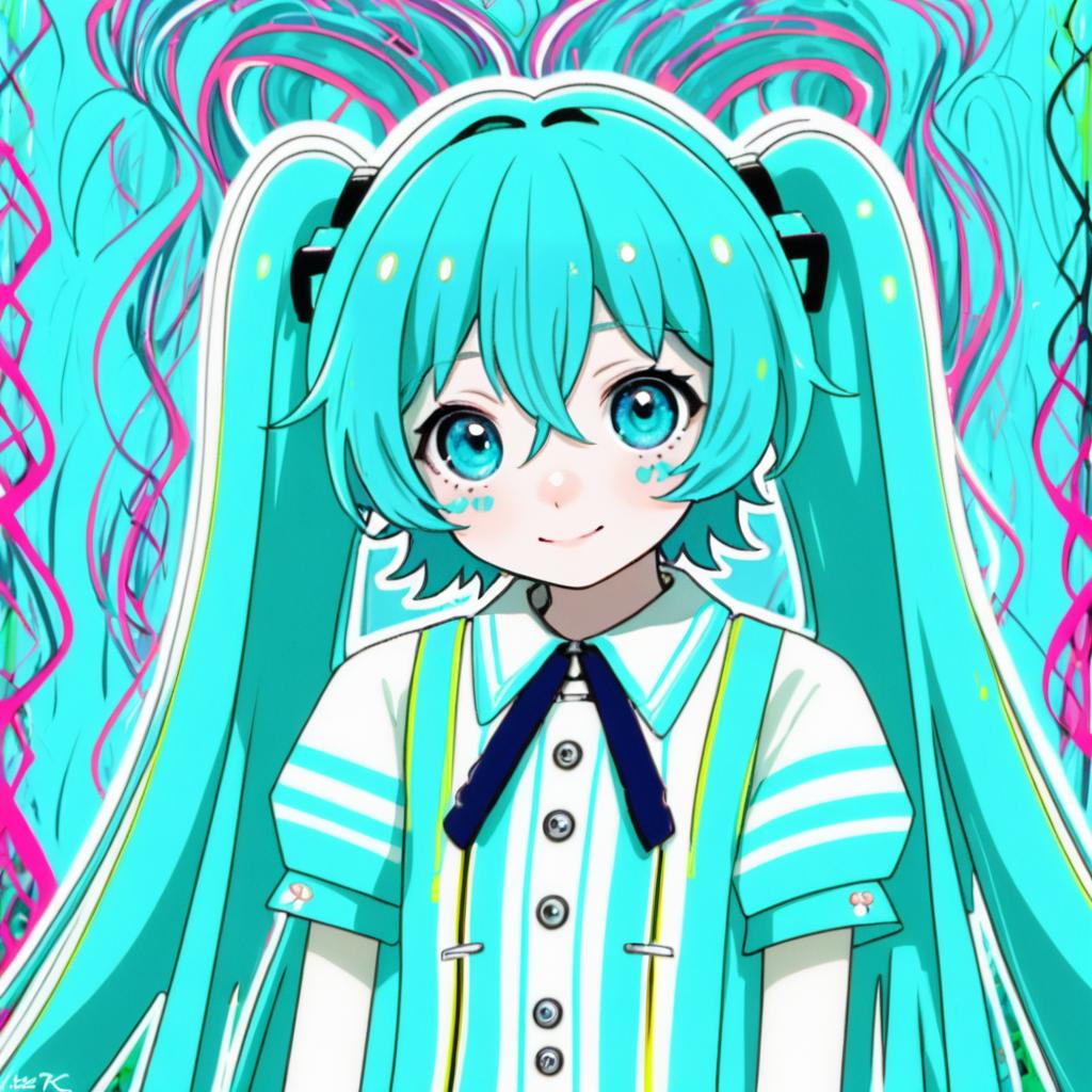 Illustration of Hachune miku, vocaloid in the style of Salamander (hop-step)