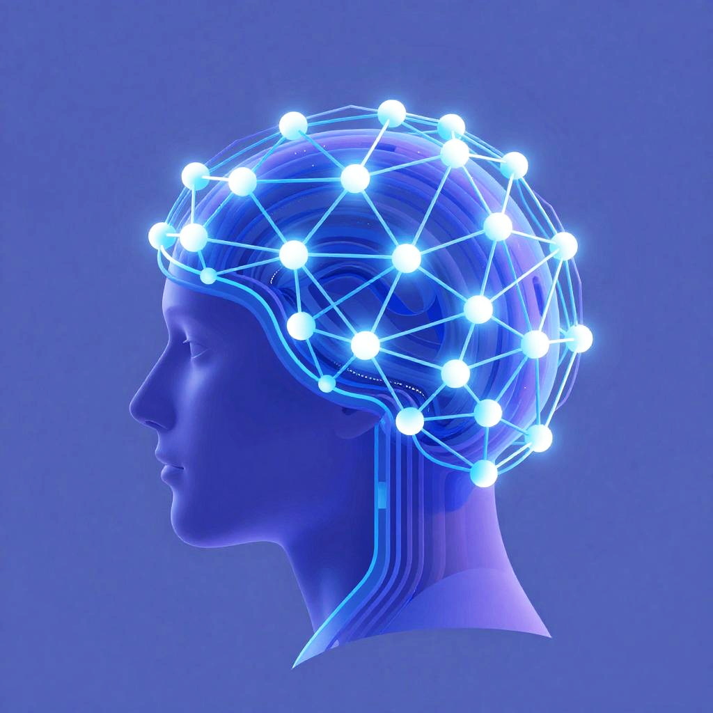 Ai vector art featuring an abstract representation of artificial intelligence as a glowing neural network with interconnected nodes and lines, blending bright blues and purples, with a minimalist tech-inspired background and smooth vector curves