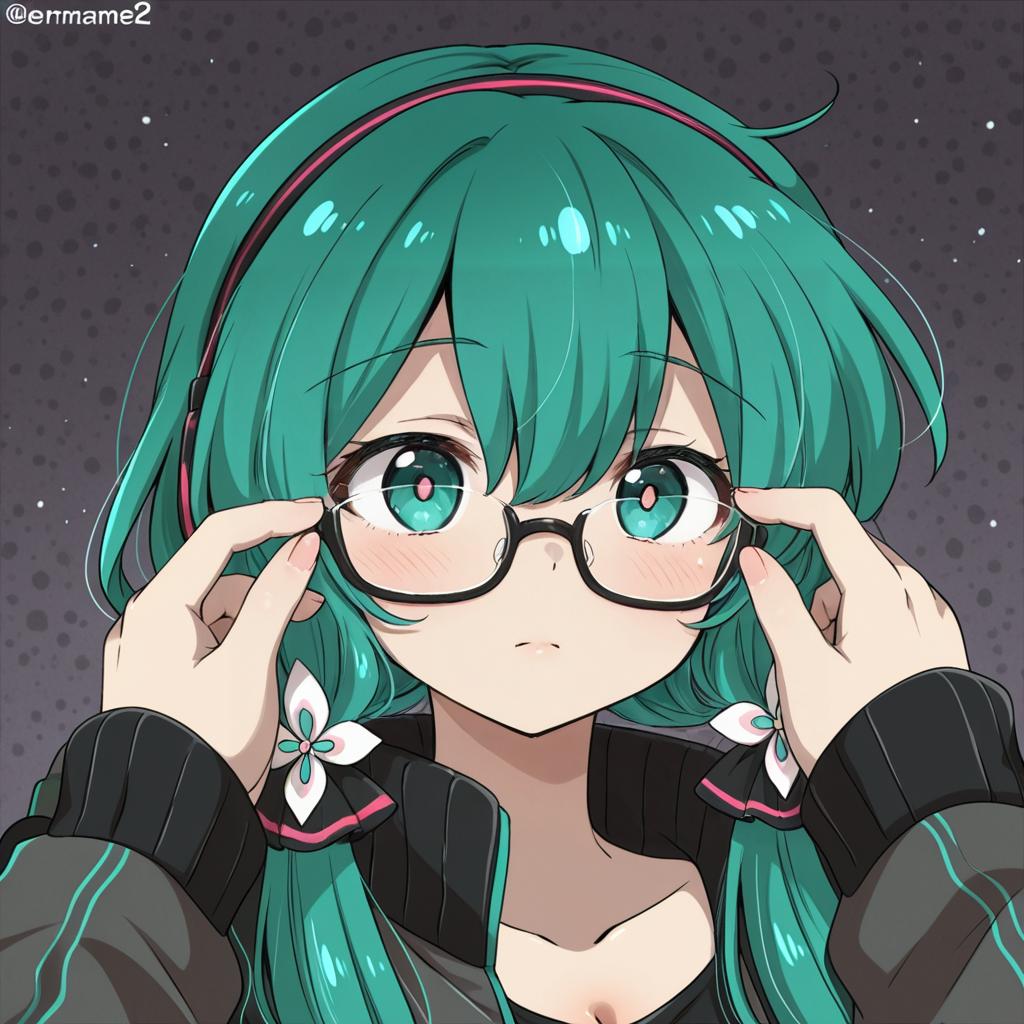 Gumiya, vocaloid, 1boy, glasses, green hair, jacket, long sleeves, by artist eromame, dark_illustrious