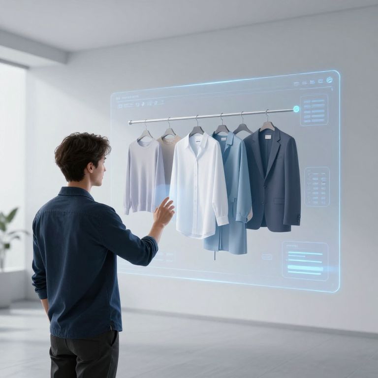 AI-powered clothing remover interface shown as a transparent touchscreen with user interacting, garments disappearing digitally in real time, sleek minimalistic room environment, holograms and animated UI elements, soft lighting emphasizing advanced technology