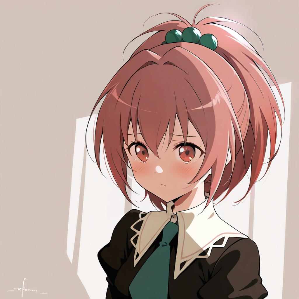 Aoi nagisa, strawberry panic!, 1girl, red eyes, short hair, red hair, ponytail, school uniform, school uniform, by artist tuteurfars shin, animagine