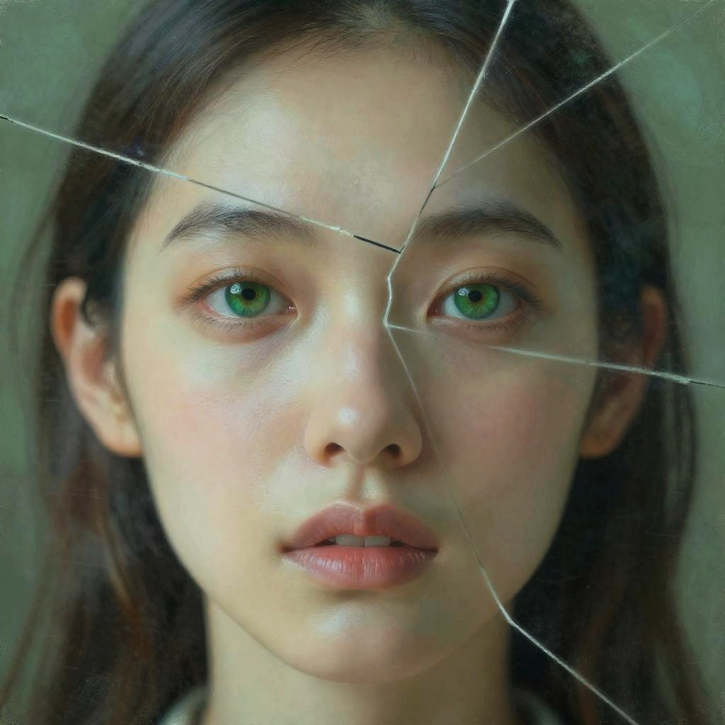Cracked Reflection: Pastel Green Dream Portrait