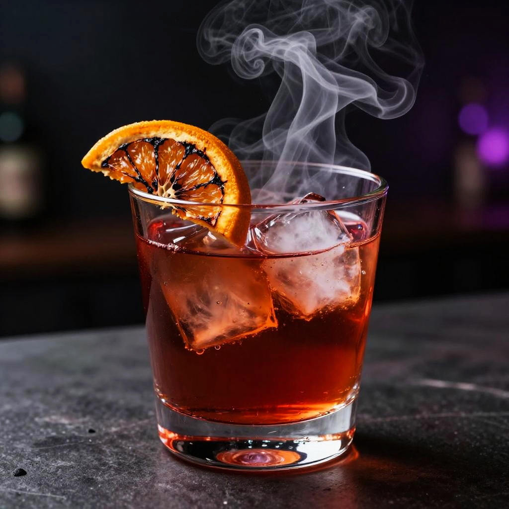 Neo-Noir Cyberpunk Smoky Negroni with Charred Orange