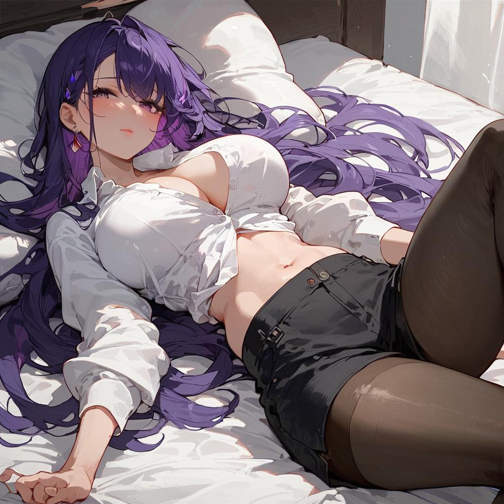 Score_9, score_8_up, score_7_up, score_6_up, source_anime, masterpiece, newest, Colored eyelashes, displeased, purple hair, bob haircut, 1girl, simple background, closeup, damaged clothes, ripped clothes, ripped pantyhose, battleground, from above, outdoors, field of grass, lying down, sword