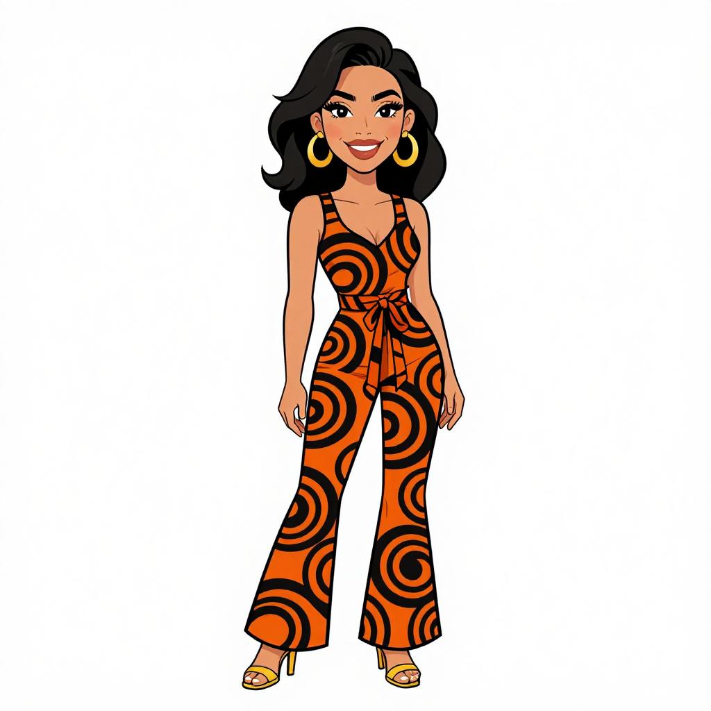 Woman with pretty face and pretty hair. smiling Woman, casual streetwear, tie-dye bodysuit in shades of orange and white, fitted silhouette, high neckline, long sleeves, white front zipper closure, paired with black lace-up ankle boots, white background. --sref 1467