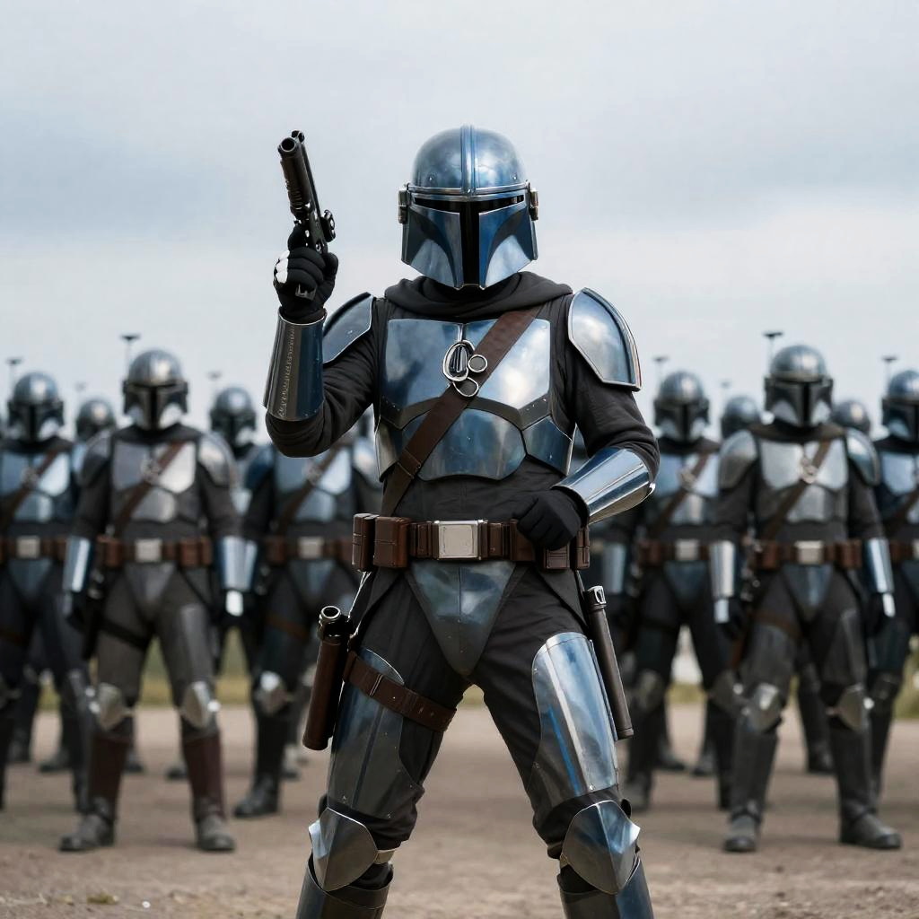 Dynamic Mandalorian Soldier in Formation