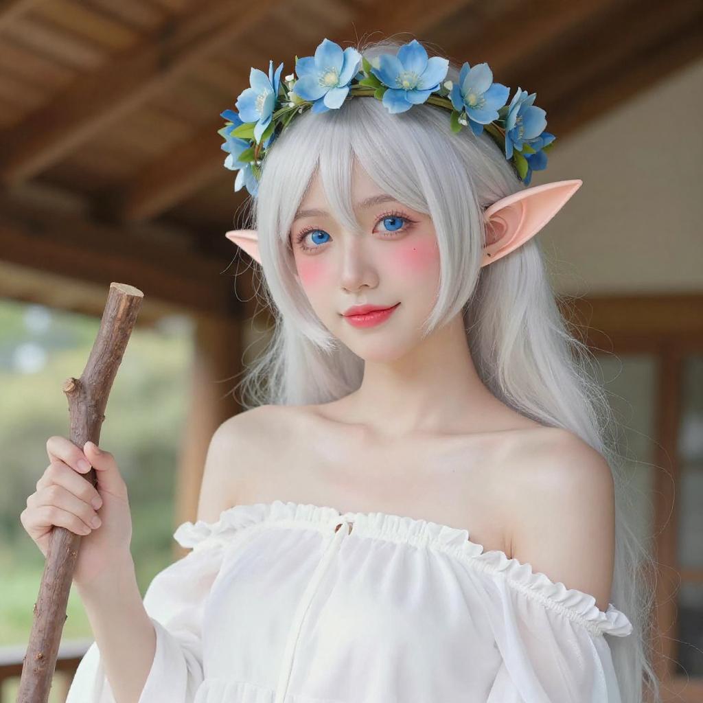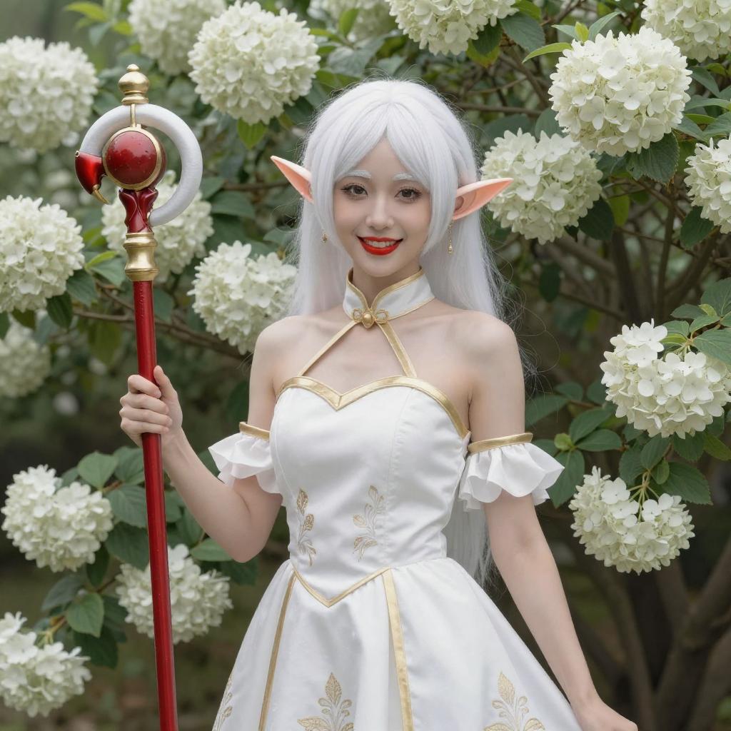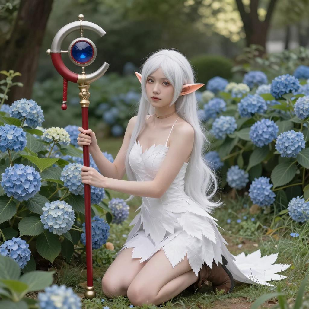 White-Haired Elf Woman in Garden