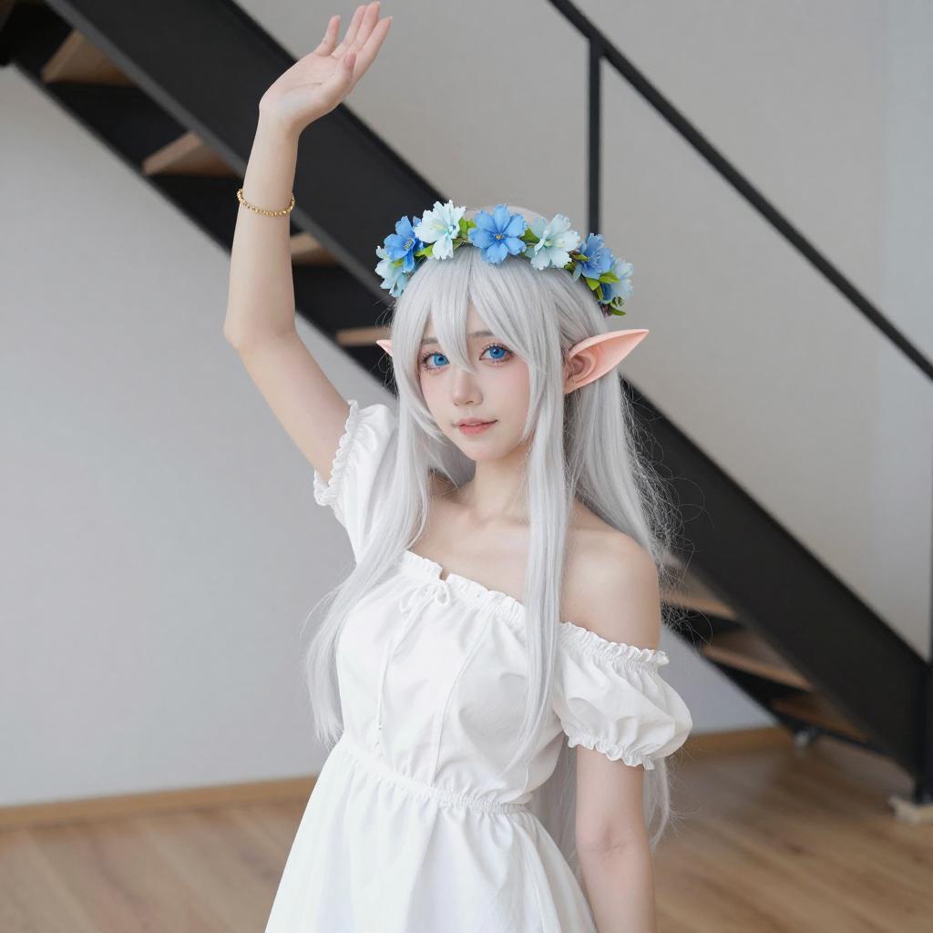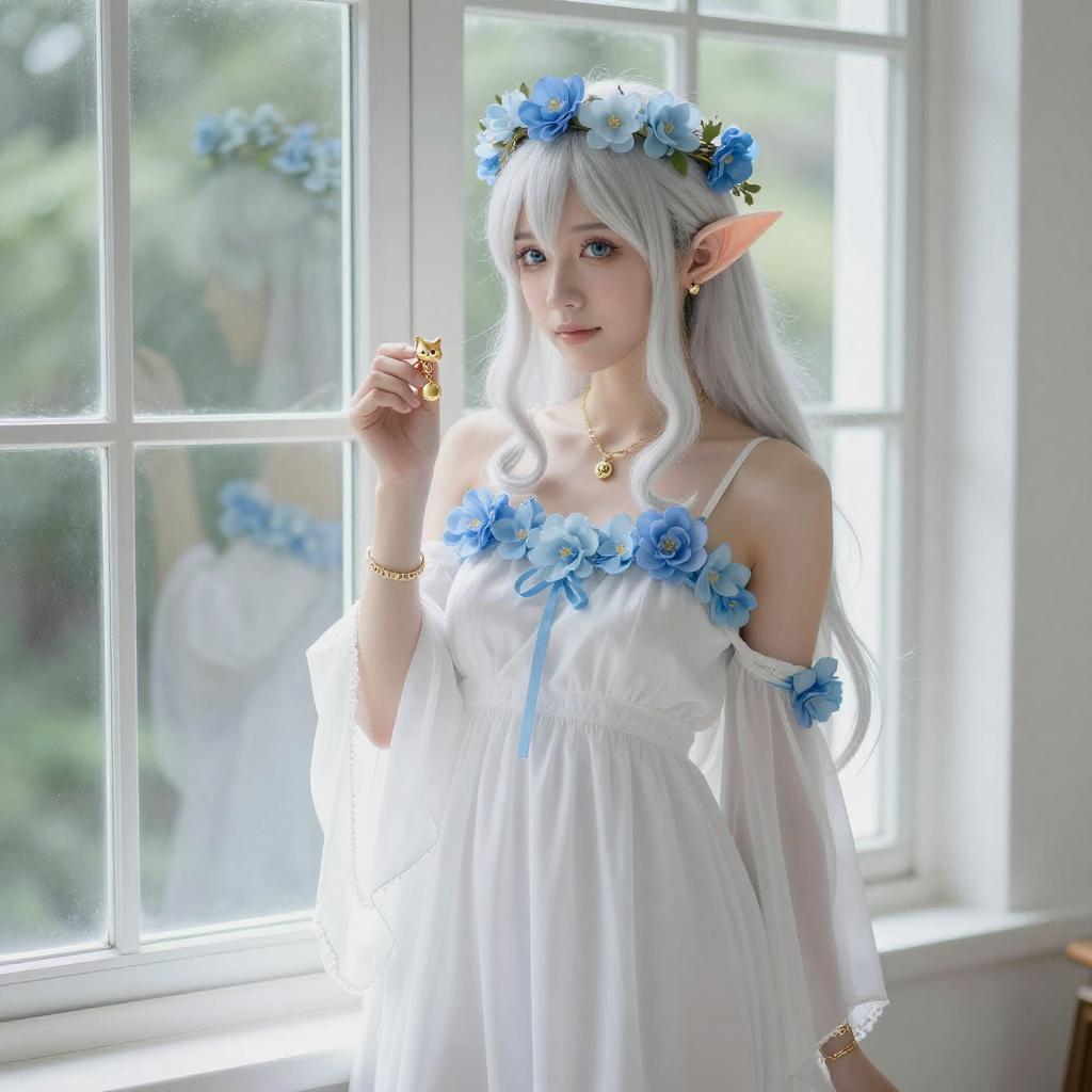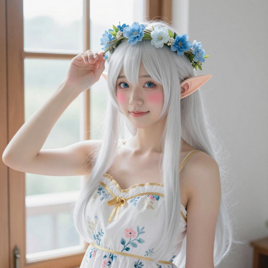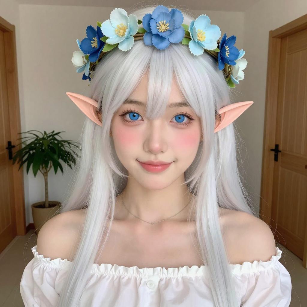 White-Haired Elf Woman in Garden