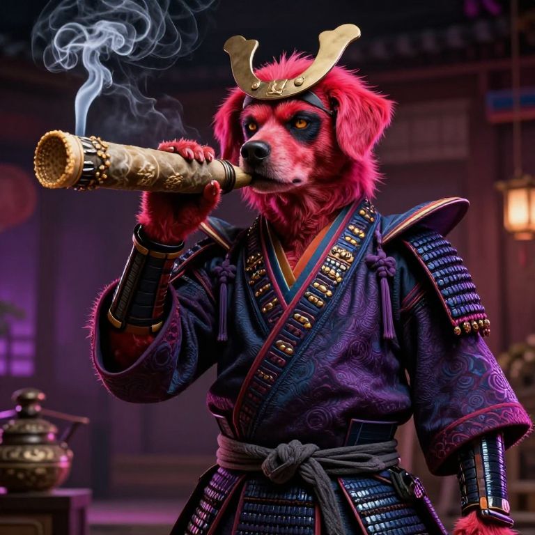 Infrared Snoop Dogg as a samurai, smoking a massive blunt, highly detailed, octane render, 8k, vivid colours, dramatic lighting, dramatic scene, immense detail,