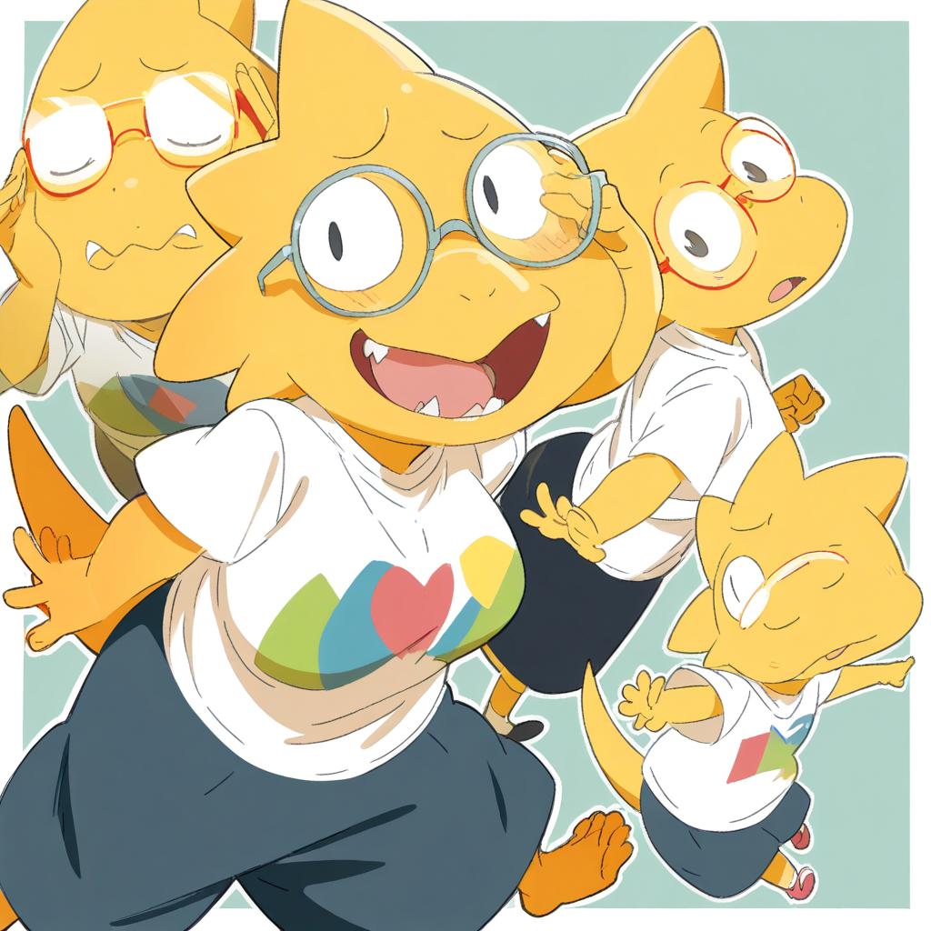 Alphys, undertale, 1girl, tail, glasses, by artist donguri suzume, animagine