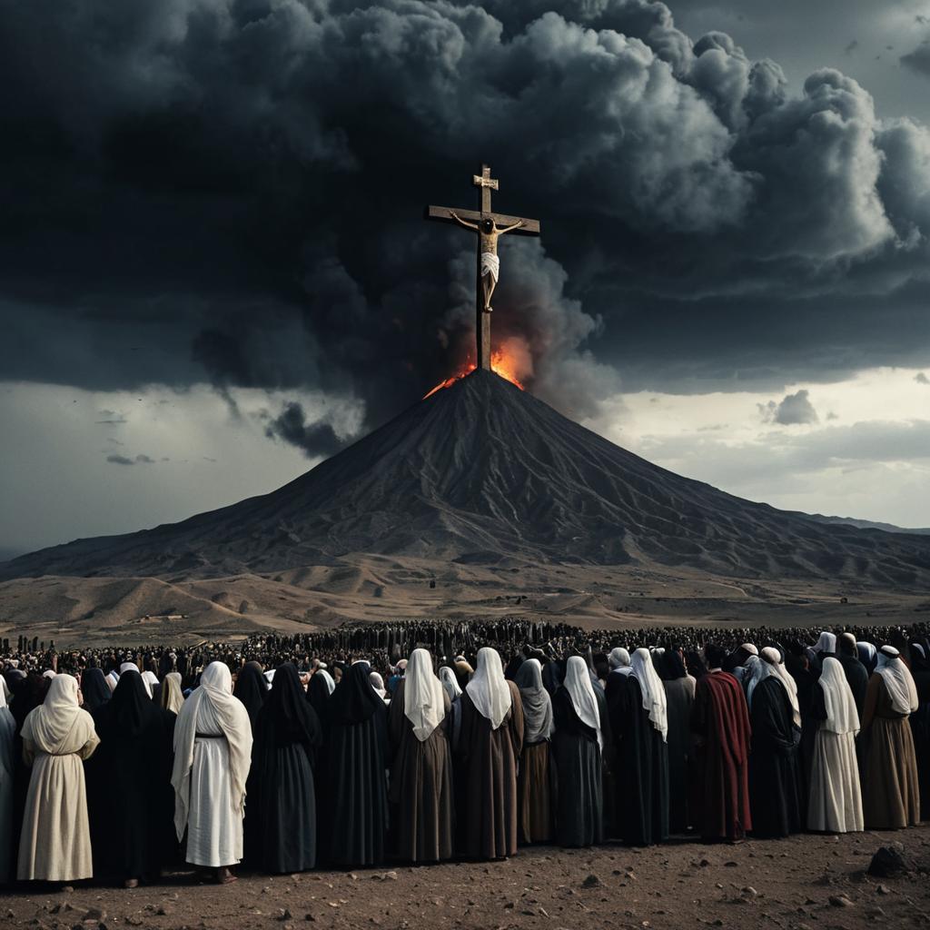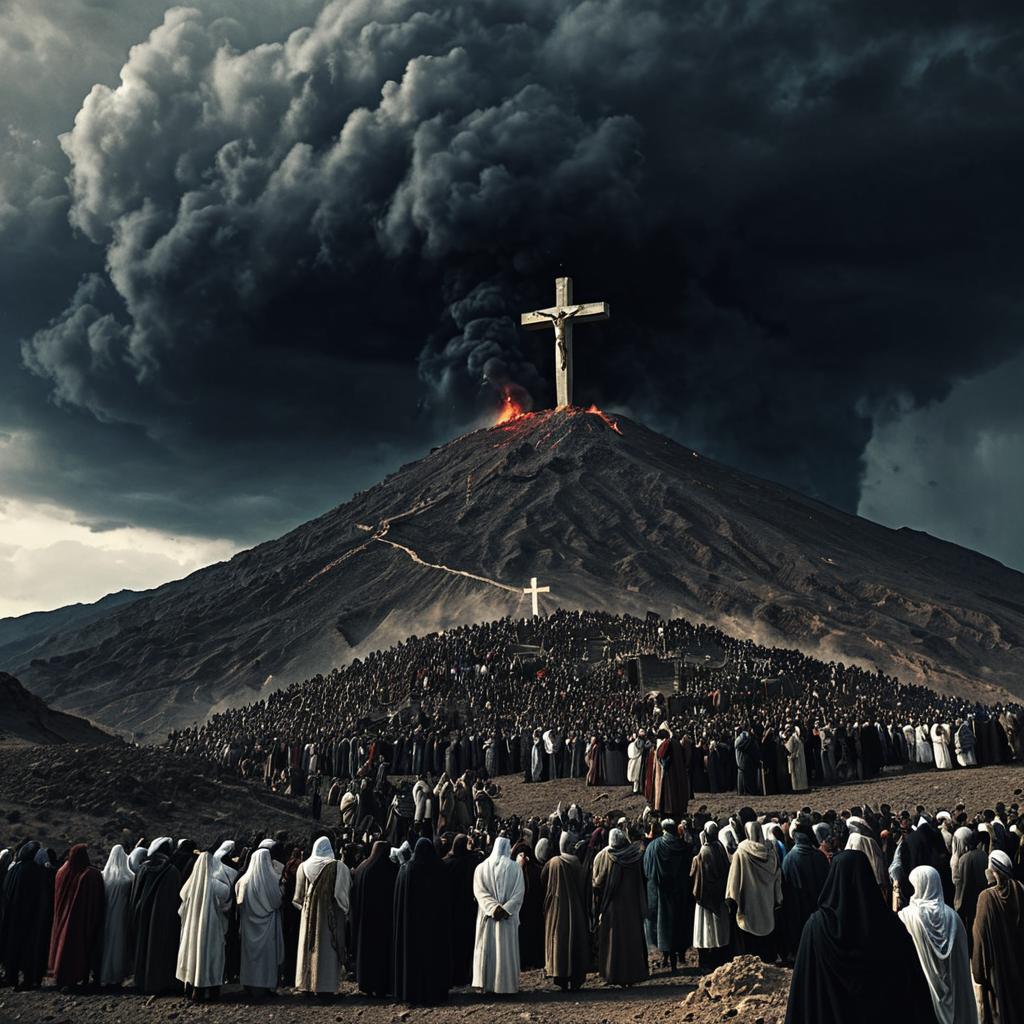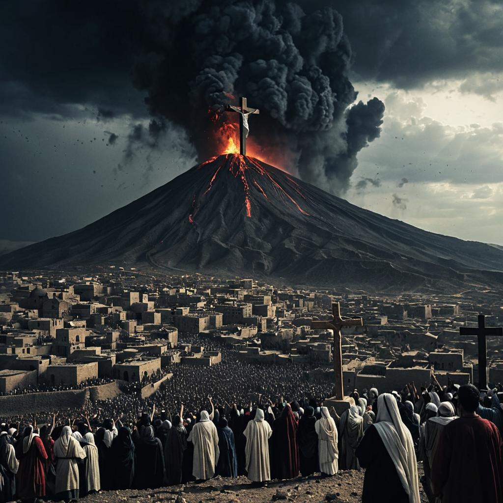 Volcanic Eruption with Crucifixion Scene