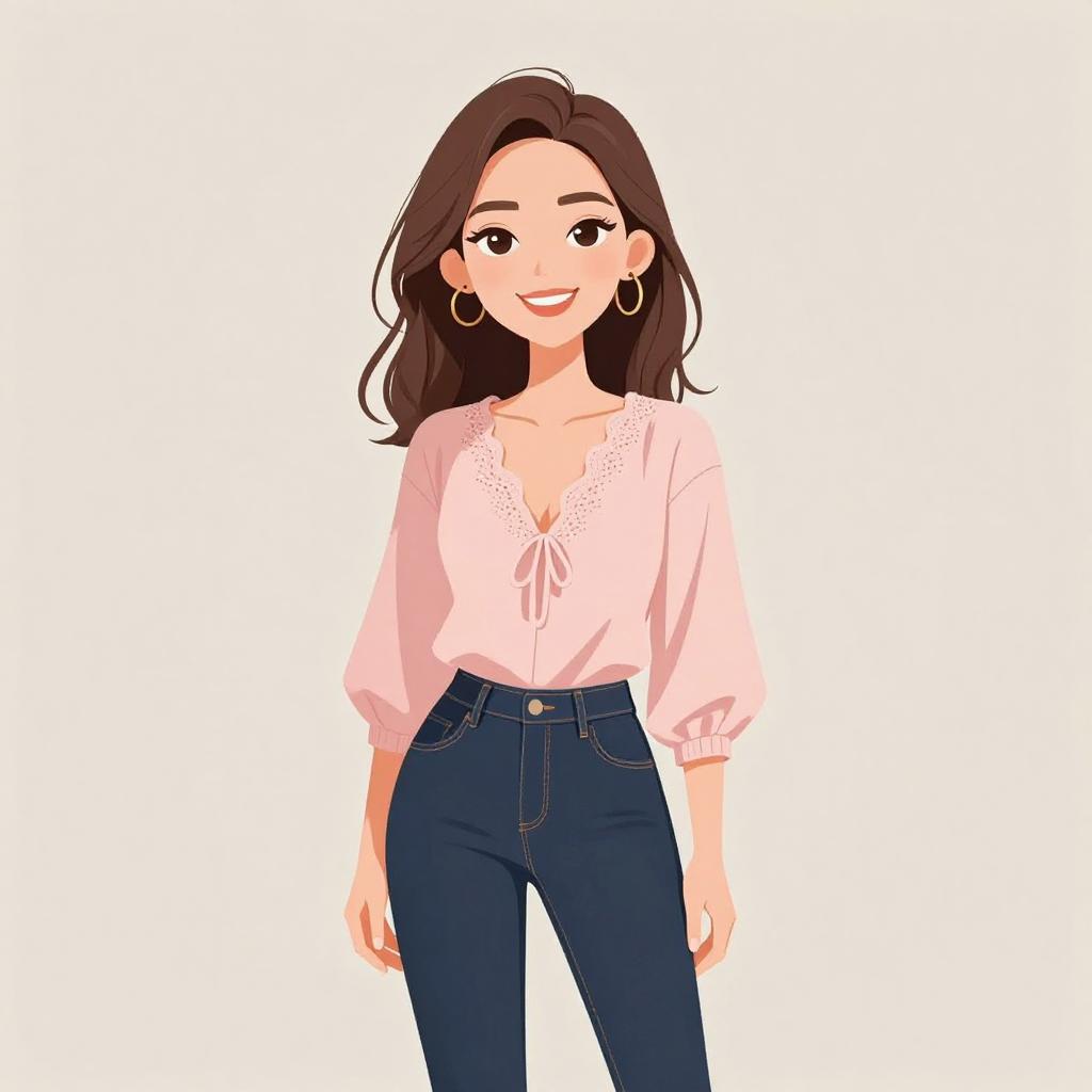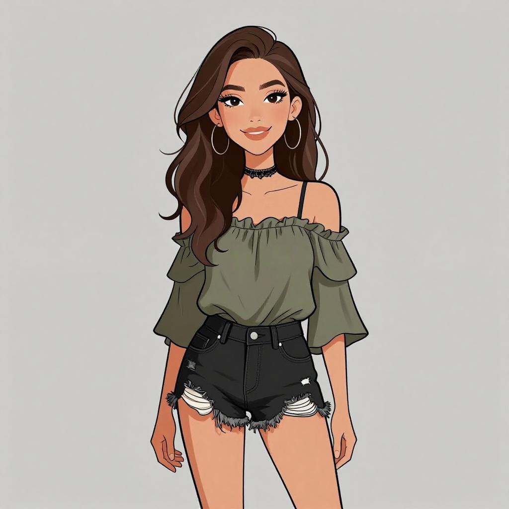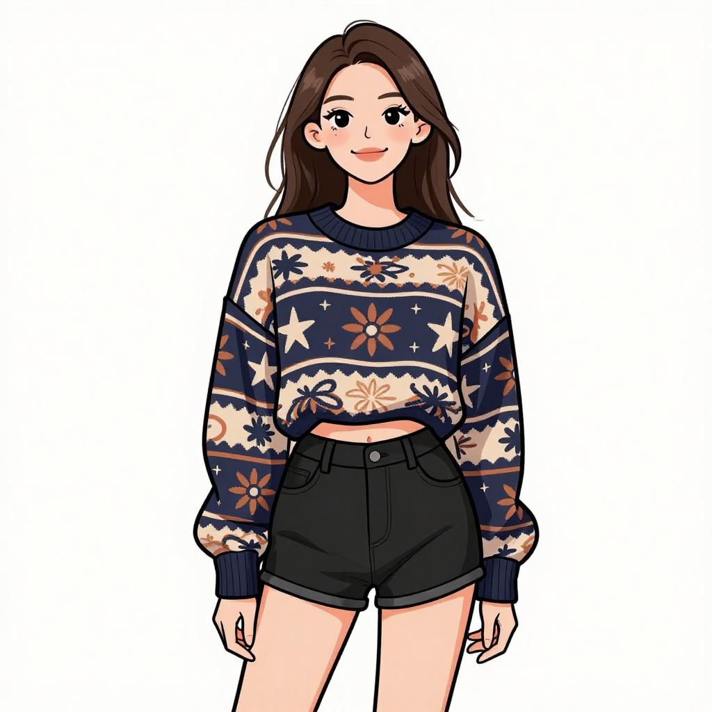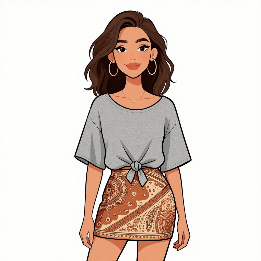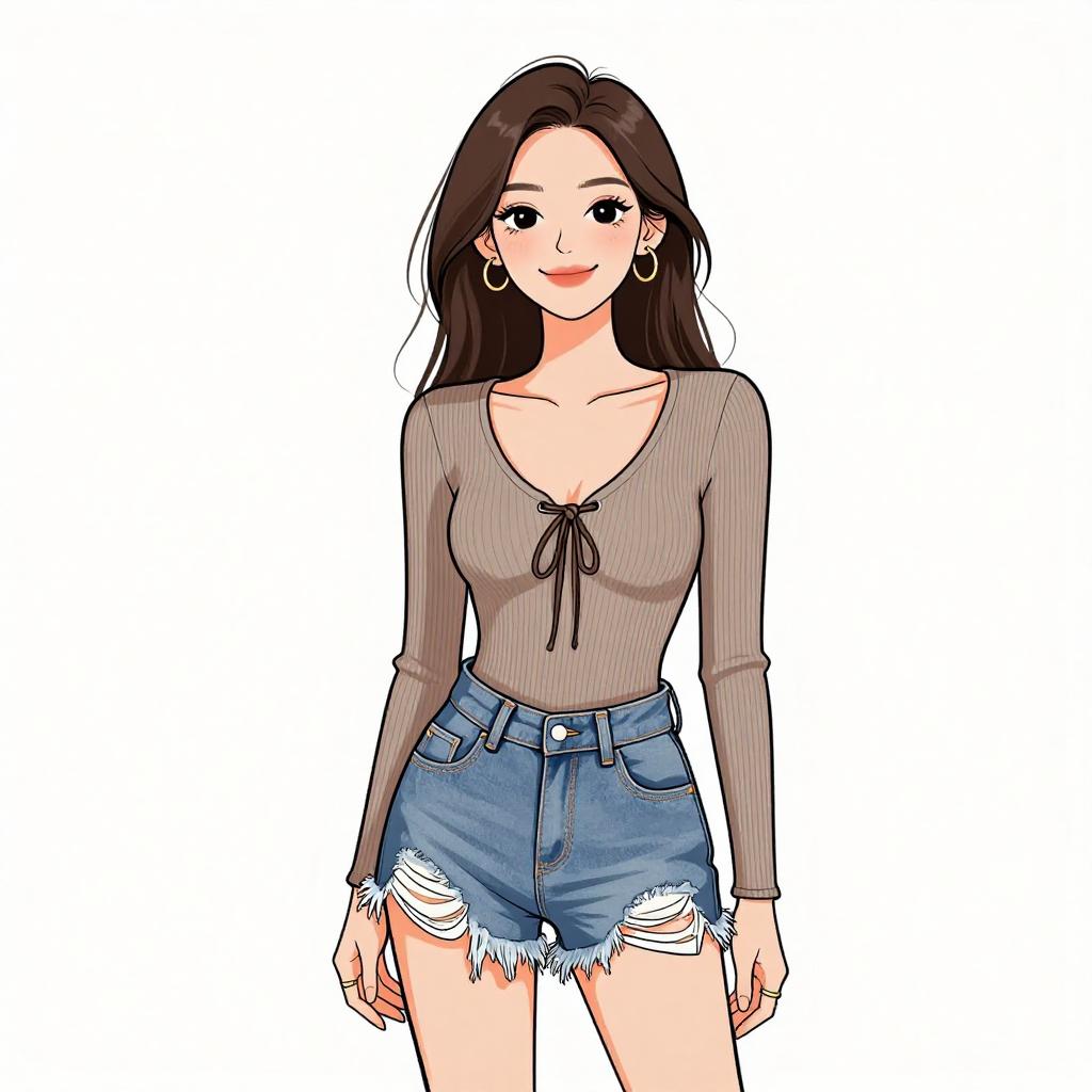 Woman with pretty face and pretty hair. smiling Woman, casual urban, oversized tie-dye sweatshirt in neutral tones, drop shoulders, long balloon sleeves, crew neck, matching tie-dye shorts with frayed hem, understated makeup, straight long hair, white studio background. --sref 1467