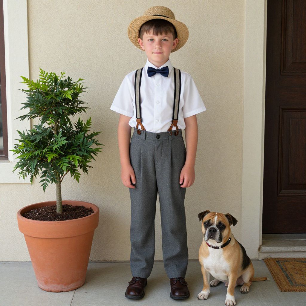 Summer Formal Boy with Dog and Plants