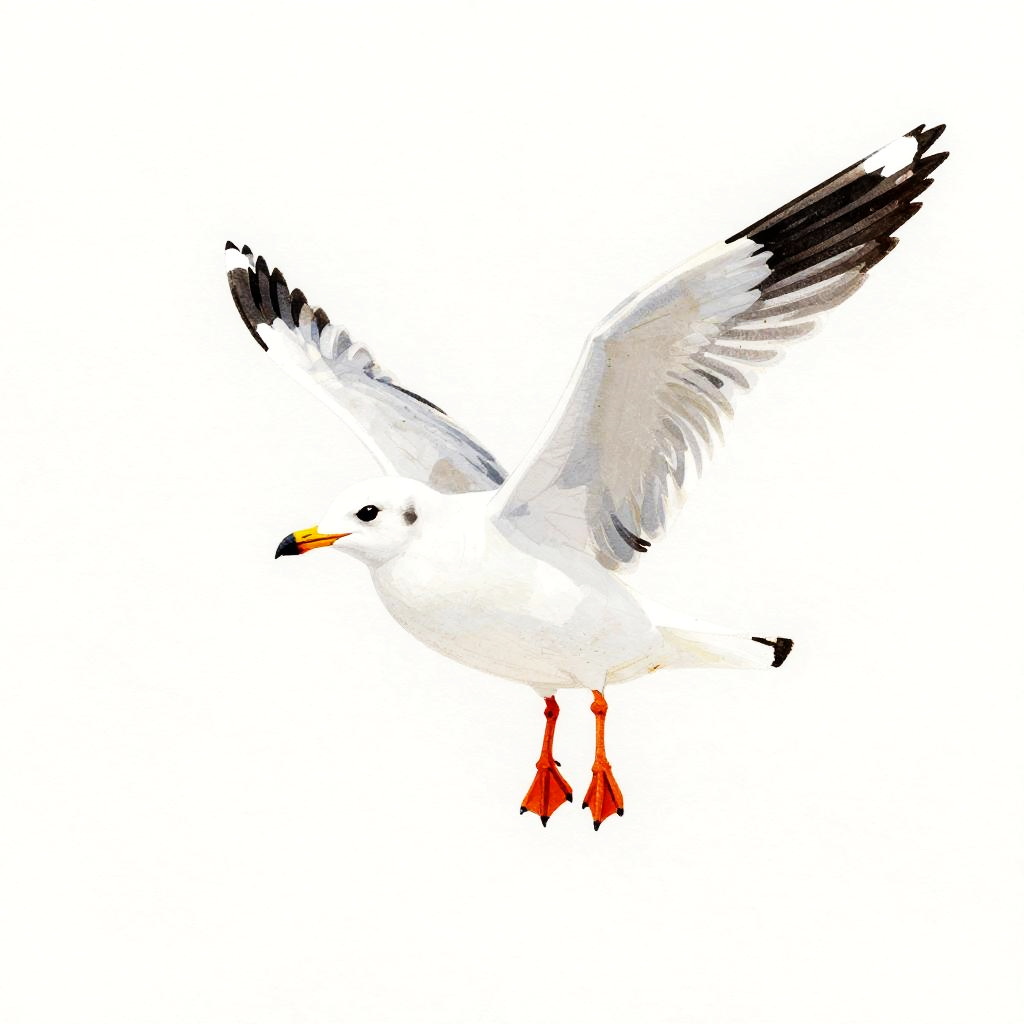 Landscape painting of a hand-drawn illustration of a seagull, in a minimalistic style with bold colors, minimalistic patterns on a white background, high quality.