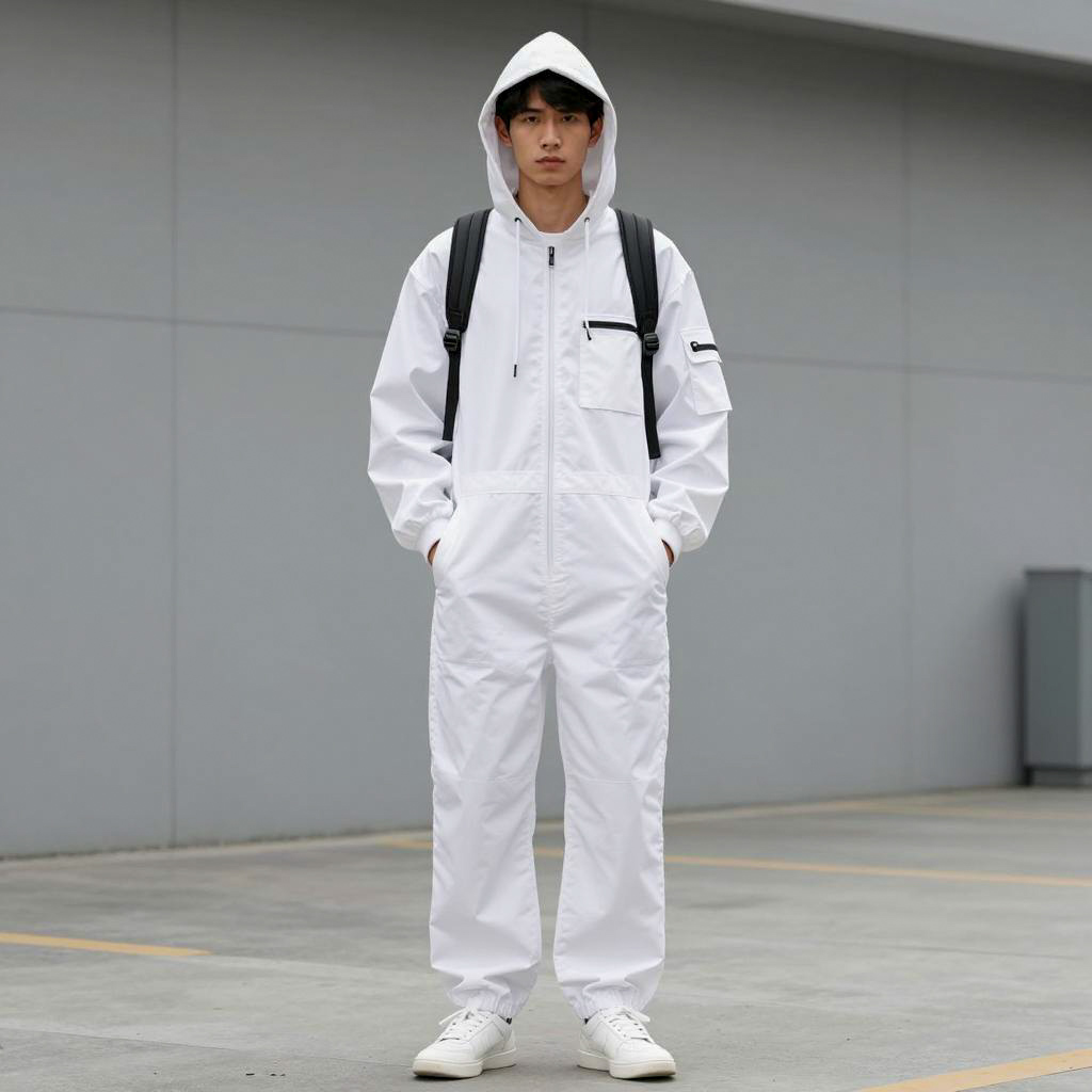 Young man in casual street outfit standing in urban alley