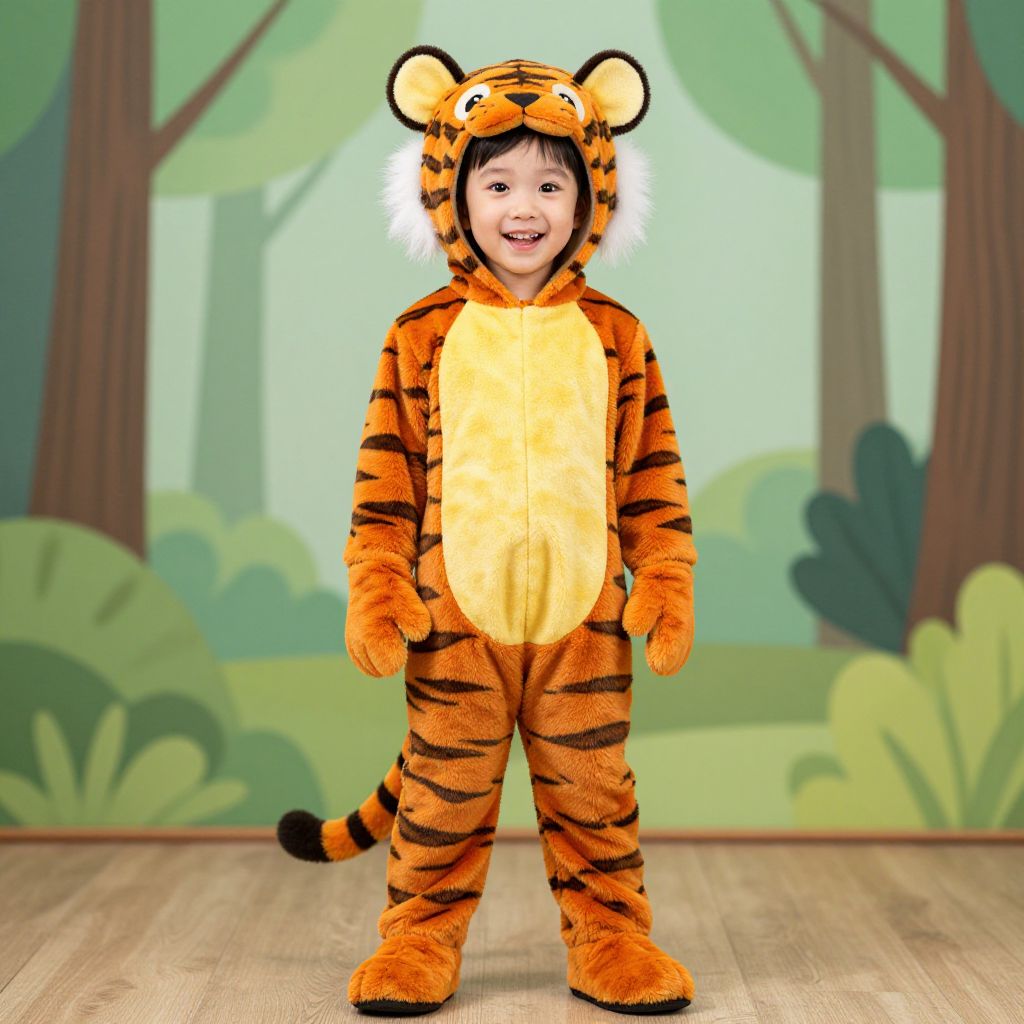 "tigger newborn outfit, tiger print, solo, animal print, animal costume, 1girl, male focus, 1boy, looking at viewer, hood, blurry background, brown hair Realistic photo of casual sexy person with pretty face"